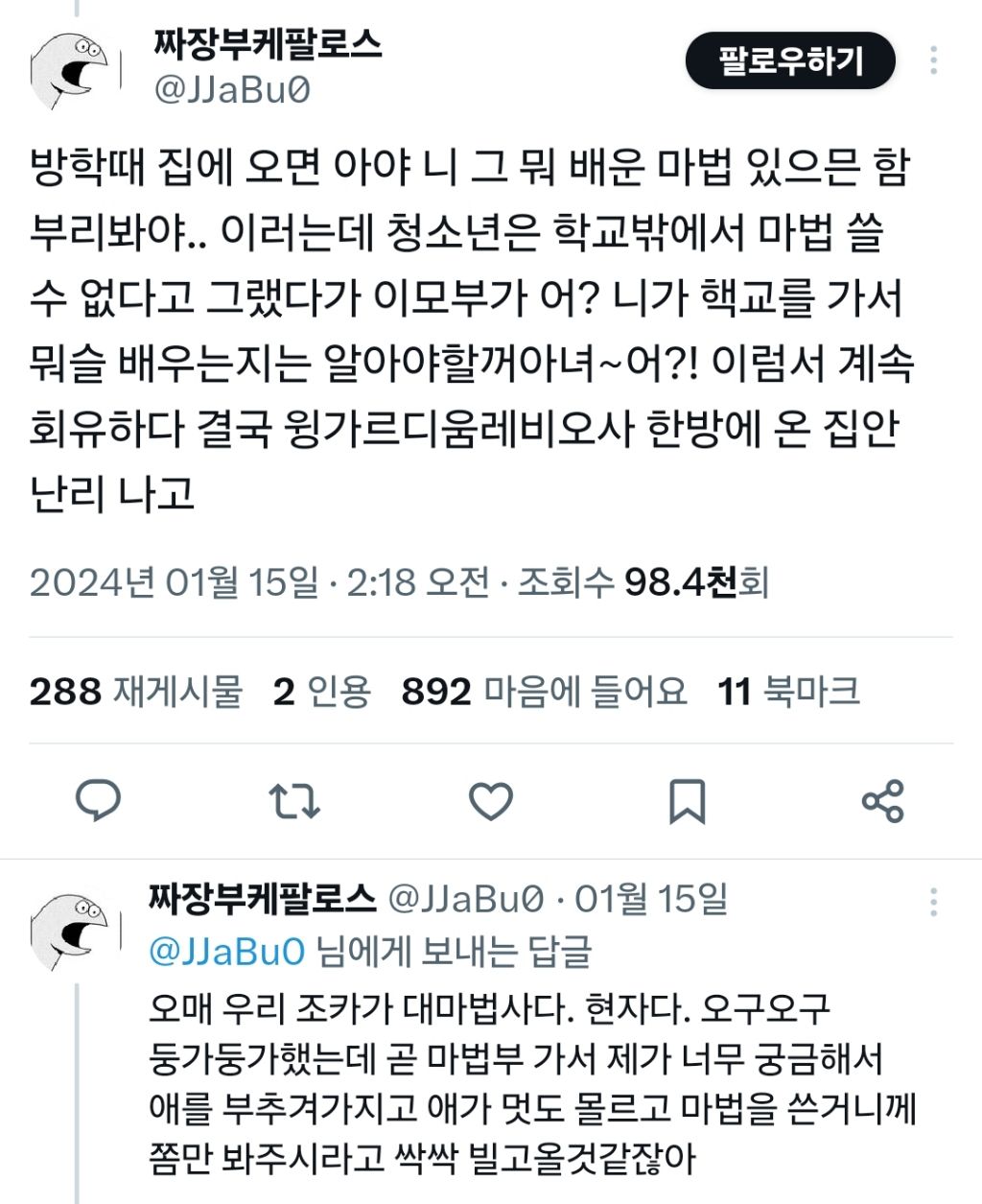 작성자포도맛나니 작성시간 26.03.12 그리고 해리의 마법법령 위반의 90%는 성시원의 충동질에서 비롯된 거임