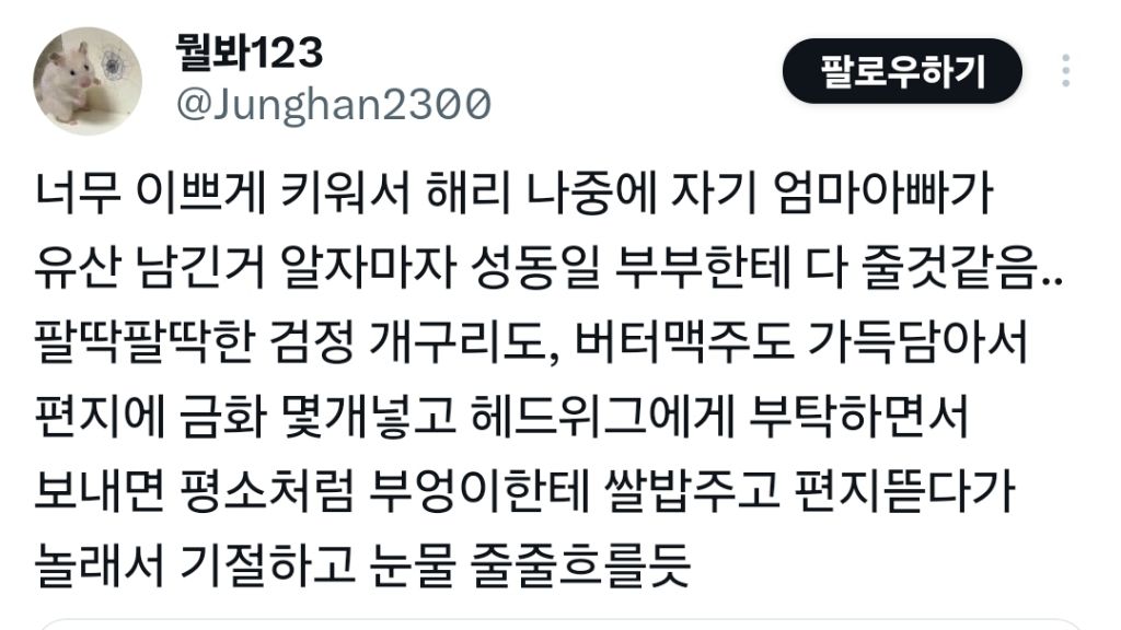 작성자상어왕 작성시간 26.03.12 그래 해리가 동일일화 밑에서 자랐다면 분명 ㅠㅠ사랑받았을거야