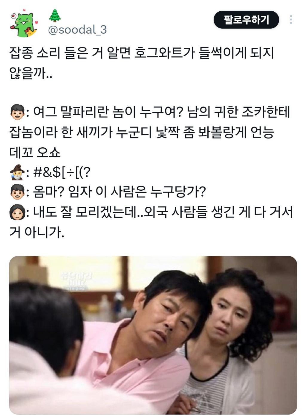 작성자삐삐 작성시간 26.03.13 서울서 하녀하닼ㅋㅋㅋㅋㅋㅋㅋㅋㅋㅋㅋㅋㅋ 난 저부분이 맨날 웃겨