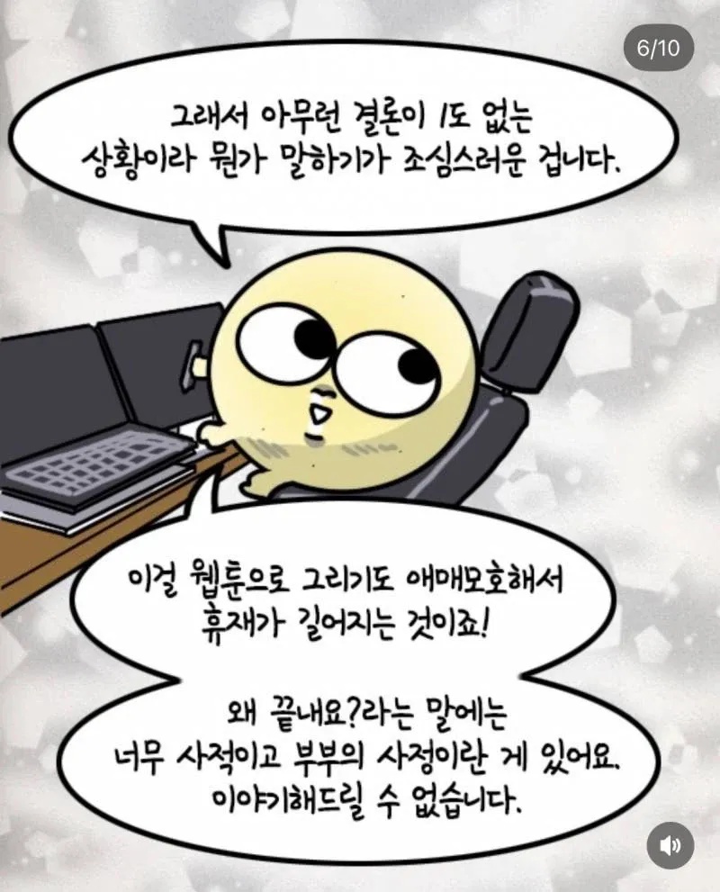 작성자HYSKOA 작성시간 26.03.14 창작일(만화)하고 늦게 자는 와이프한테 맨날 아침 일찍 왜 안 일어나서 정상인처럼 안 사냐고 ㅈㄹㅈㄹㅈㄹ 하던 남편;; 지보다 와이프가 돈도 잘 벌거같은데 존나 이해 안감