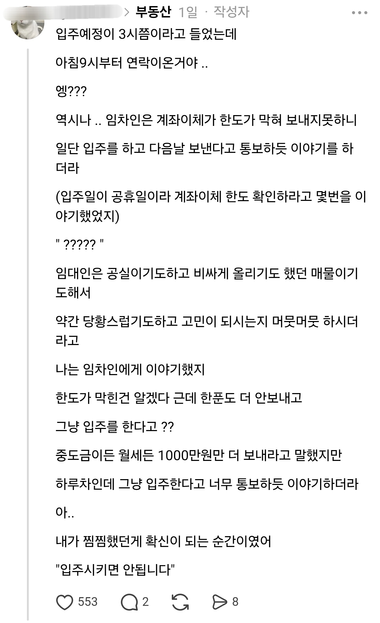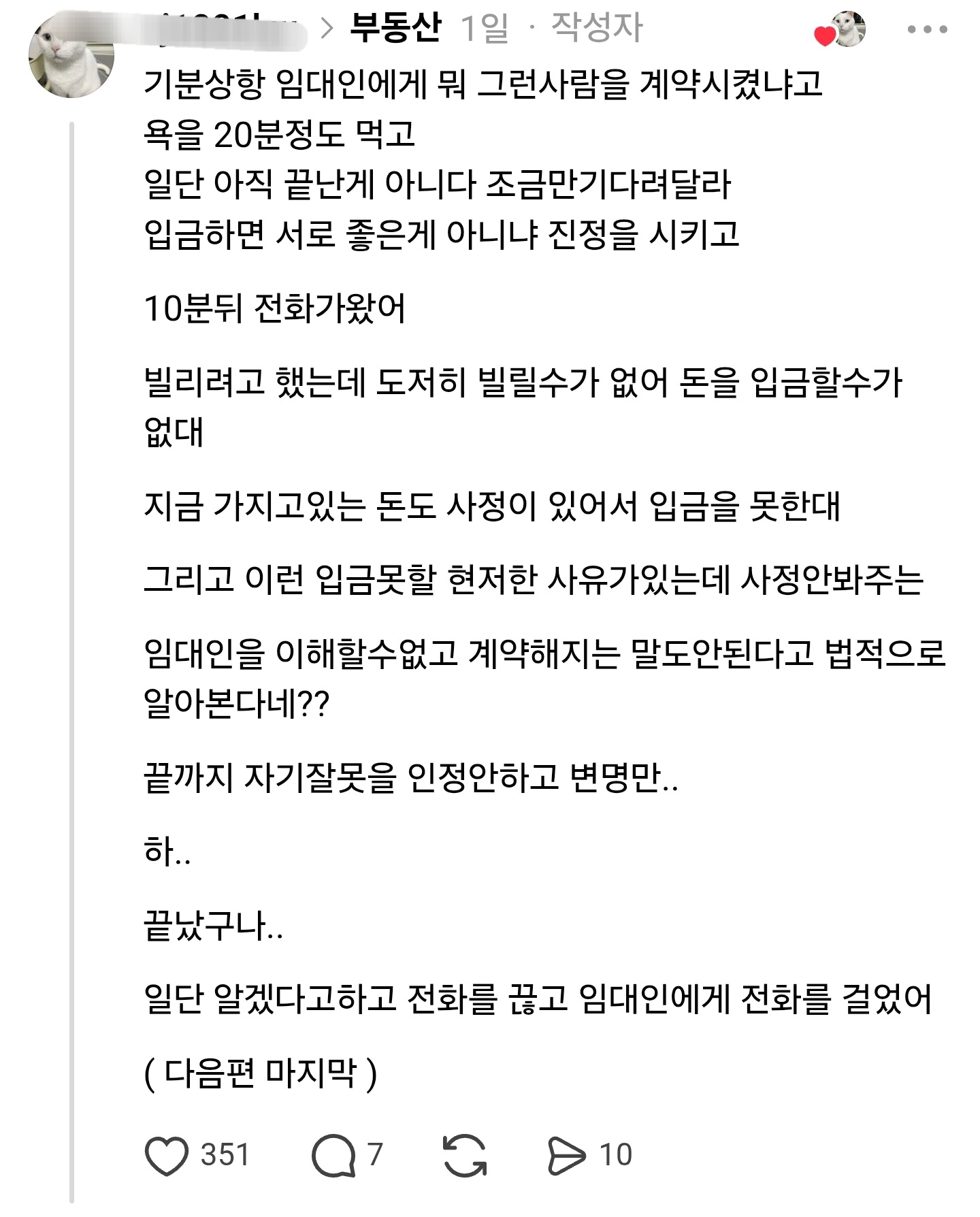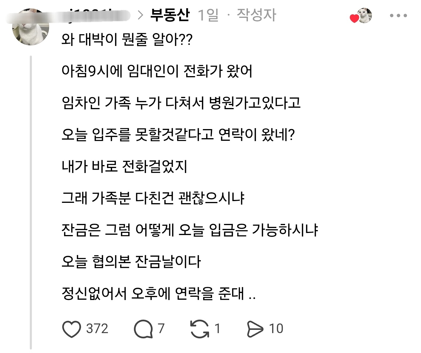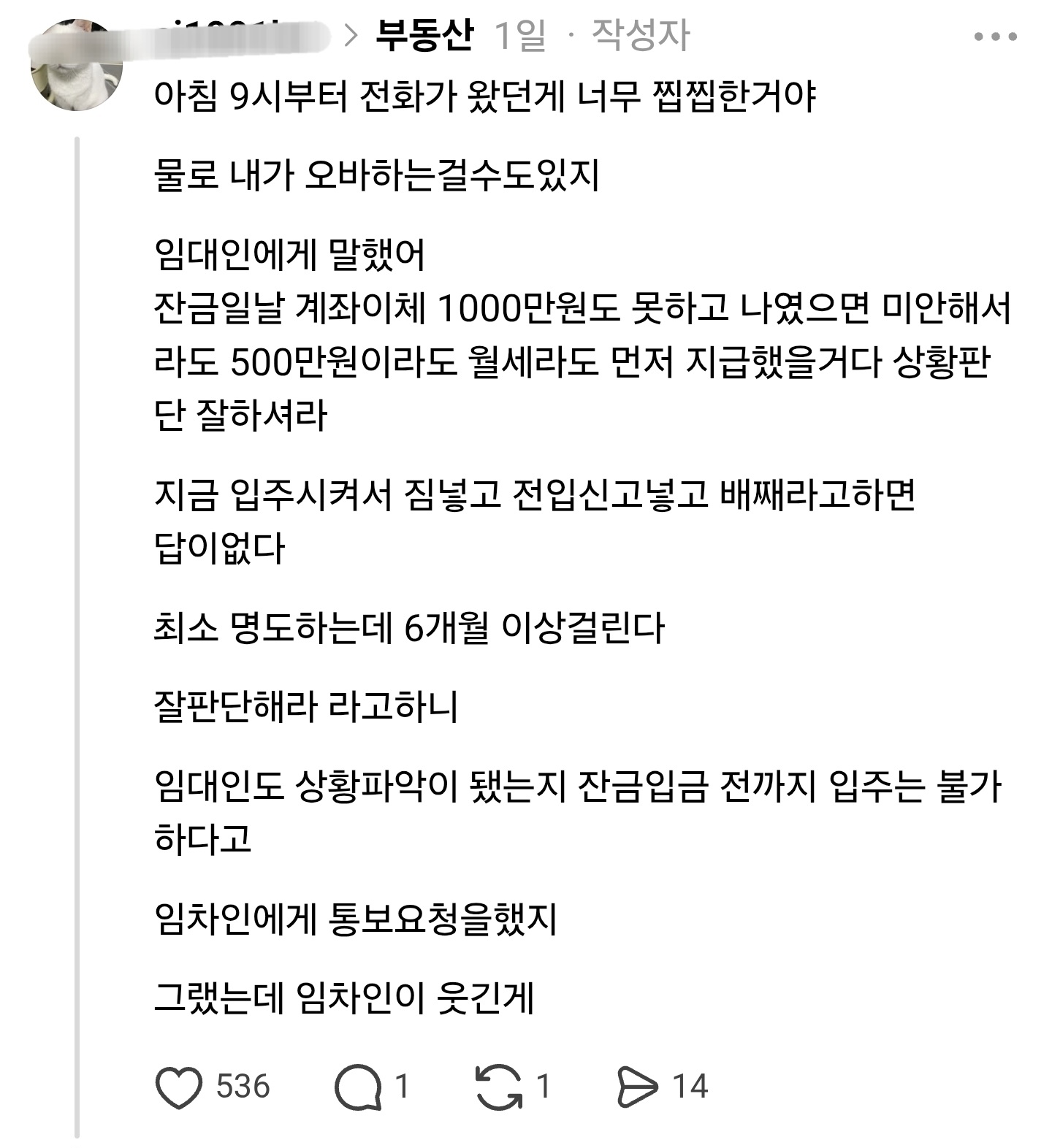 작성자빵처럼구워져지내는게아주습관 작성시간 26.03.13 못된 사람들 너무 많더라 나 몸고생 맘고생시킨 건물주, 관리인이랑 짜고친 부동산중개자새키 벌받아라