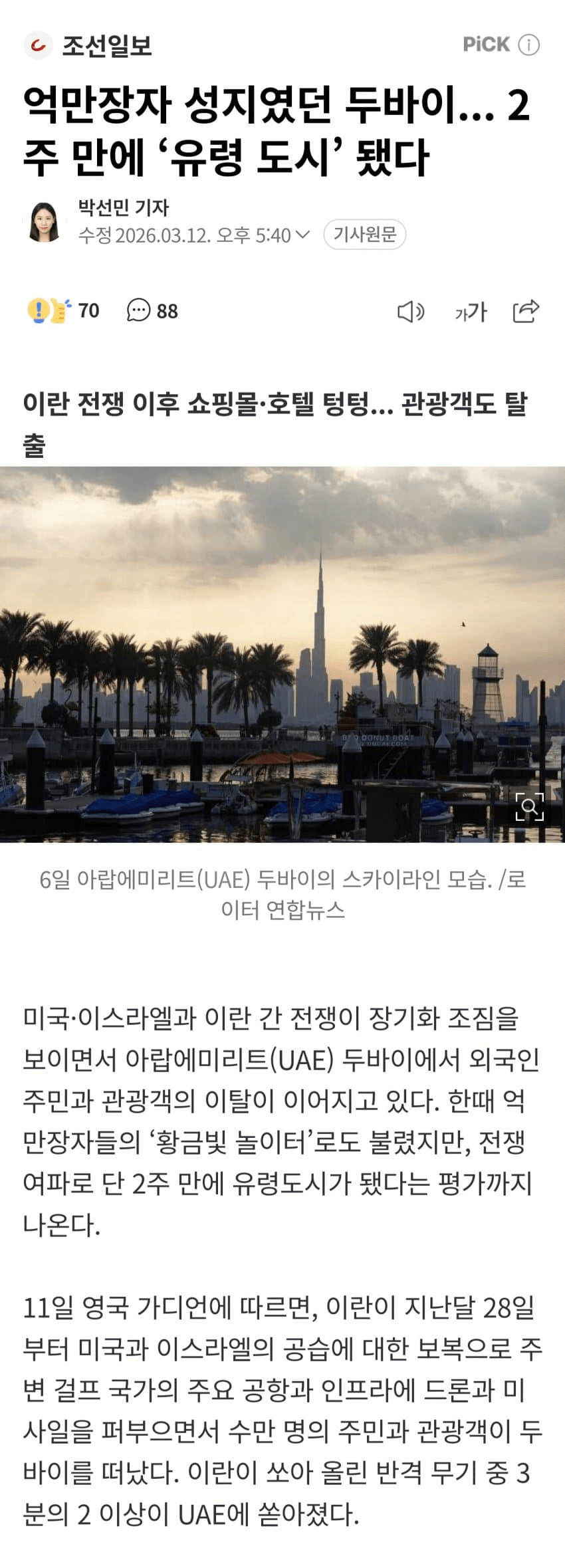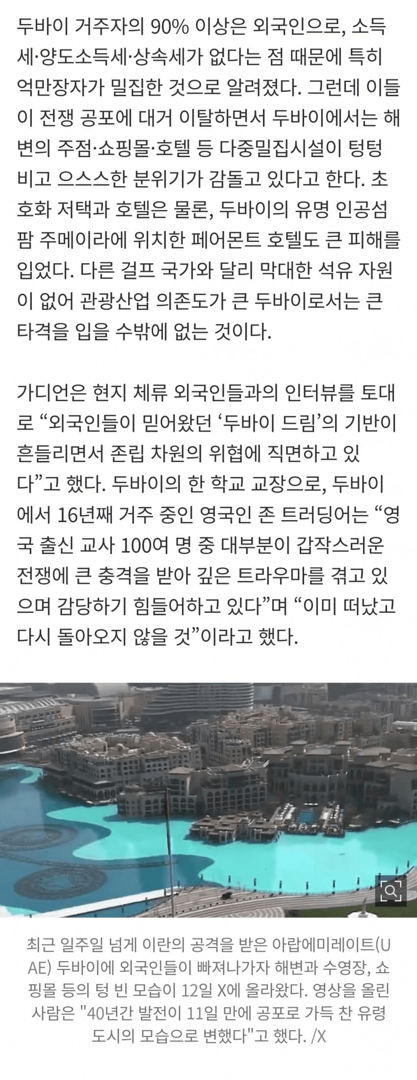 [기타]심각한 두바이 근황 작성자Sunmoonstar02|작성시간26.03.13|조회수125,810 목록 댓글 29 글자크기 작게가 글자크기 크게가 출처: https://www.dmitory.com/issue/403464361 다음검색 현재 게시글 추가 기능 열기 북마크 공유하기 신고 센터로 신고 댓글 댓글 29 댓글쓰기 답글쓰기 댓글 리스트 작성자강력한행정집행의대가 | 작성시간 26.03.13 딱 다음달에 저기 있을 예정이었는데... 작성자영테라 | 작성시간 26.03.13 두바이 진짜 개좋던데ㅜ 작성자닉네임, | 작성시간 26.03.13 한번은 가보고 싶었는데 무서워서 못 가겠다.. 두바이에서 F1직관도 해보고 싶었는데.. 작성자체 리 | 작성시간 26.03.14 헐..... 작성자직거래살임마 | 작성시간 26.03.14 나 출장가야되는데 다 꼬여서 속터진다ㅜ 댓글 전체보기