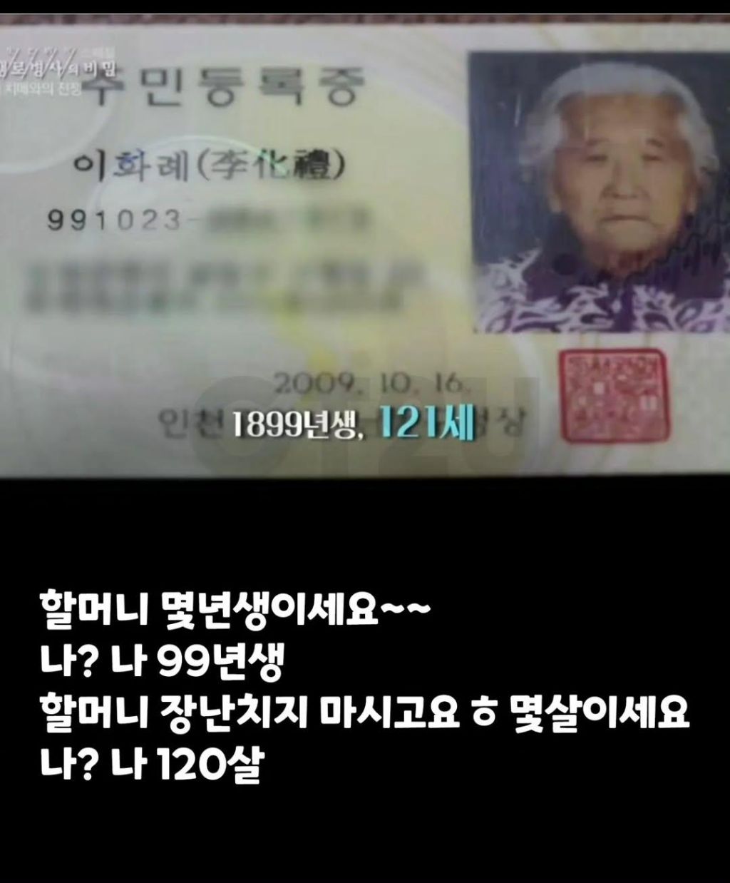 작성자20110917♥ 작성시간 26.03.13 저분들 주민등록번호 뒷자리 9나 0으로 시작한다. 난 주민등록번호가 잘못돼있다고 화들짝 놀랐는데 1900년대생들이 1이랑 2로 시작하는거였어 1800년은 9랑 0, 2천년대들은 3이랑4