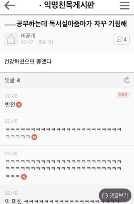 [흥미돋]ㅡㅡ 공부하는데 독서실아줌마가 자꾸 기침해 작성자서현|작성시간26.03.13|조회수45,742 목록 댓글 5 글자크기 작게가 글자크기 크게가 출처: https://cafe.daum.net/subdued20club/ReHf/5576511ㅡㅡ공부하는데 독서실아줌마가 자꾸 기침해출처: 여성시대 pllo cafe.daum.net 싸뜻한 사람 다음검색 현재 게시글 추가 기능 열기 북마크 공유하기 신고 센터로 신고 댓글 댓글 5 댓글쓰기 답글쓰기 댓글 리스트 작성자약한뭐요 | 작성시간 26.03.13 수윗하다 작성자잠이나 잘래 | 작성시간 26.03.13 싸뜻한 사람 ㅠㅅㅂㅋㅋㅋㅋㅋㅋㅋㅋㅋㅋㅋㅋㅋㅋㅋㅋㅋㅋㅋㅋㅋㅋ 작성자귀여운고양이 | 작성시간 26.03.13 건강하셨음 좋겠다 시끄러우니까이런 거 아니겠지 ㅋㅋ큐ㅠ 작성자지금몇시임 | 작성시간 26.03.13 ㅋㅋㅋㅋㅋ 해당 댓글은 작성자와 운영진만 볼 수 있습니다. 댓글 전체보기