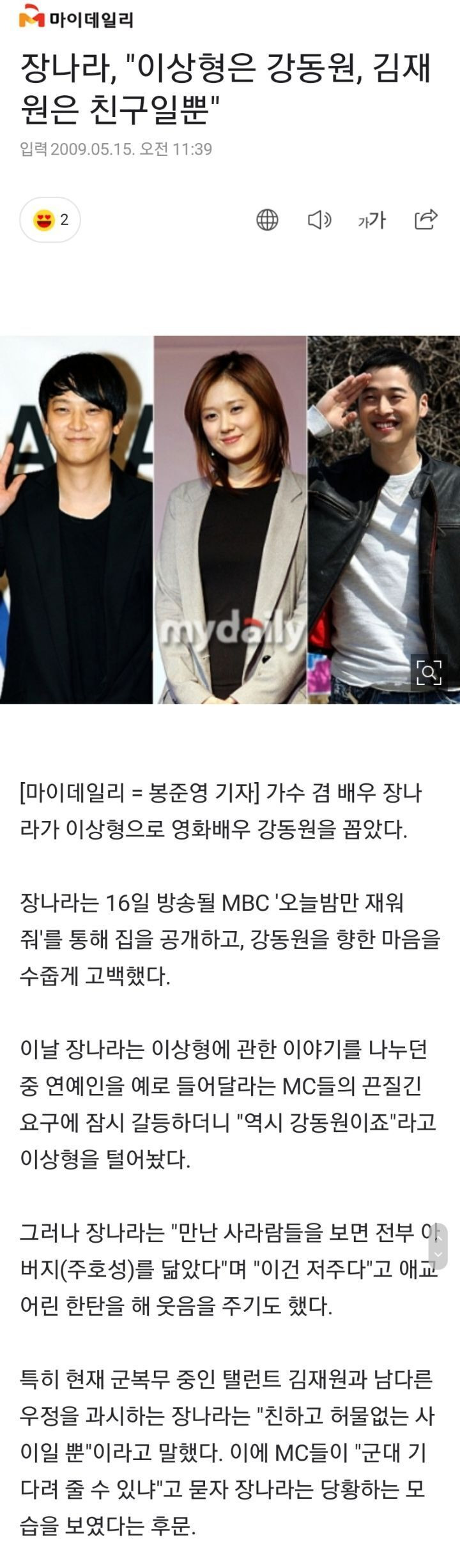 당시에 장나라가 강동원 팬카페? 가입도 했었다고ㅋㅋㅋㅋㅋ 강동원은 이상형이고 김재원은 친구인 관계성도 기가 막힌 조합