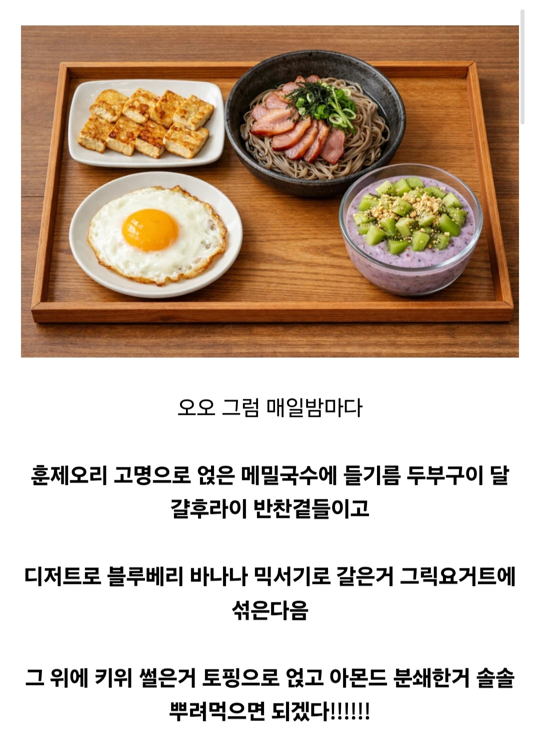 [스크랩] [흥미돋]의사들이 먹어도 괜찮다고 하는 야식 작성자듀듀듀듀듕듕|작성시간26.03.13|조회수18,442 목록 댓글 6 글자크기 작게가 글자크기 크게가 출처: https://theqoo.net/square/4118796105......? 다음검색 스크랩 원문 : *여성시대* 차분한 20대들의 알흠다운 공간 현재 게시글 추가 기능 열기 북마크 공유하기 신고 센터로 신고 댓글 댓글 6 댓글쓰기 답글쓰기 댓글 리스트 작성자언제행복해지나 | 작성시간 26.03.13 오이는여ㅡㅡ 작성자Leslie Cheung | 작성시간 26.03.13 오 블루베리 먹는중 작성자역적45 | 작성시간 26.03.13 사실상 건강식 작성자밀크(22세) | 작성시간 26.03.14 저건 난 야식으로 안쳐 작성자overwatch | 작성시간 26.03.14 ㅋㅋㅋ 근데 진짜 저렇게 먹어도 치킨 같은 것보단 건강한 거 아님? 세트 팔아주라 댓글 전체보기