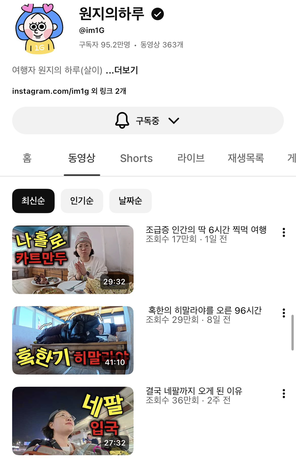 예전 원지 여행 폼으로 네팔 여행 영상 시리즈 업로드함