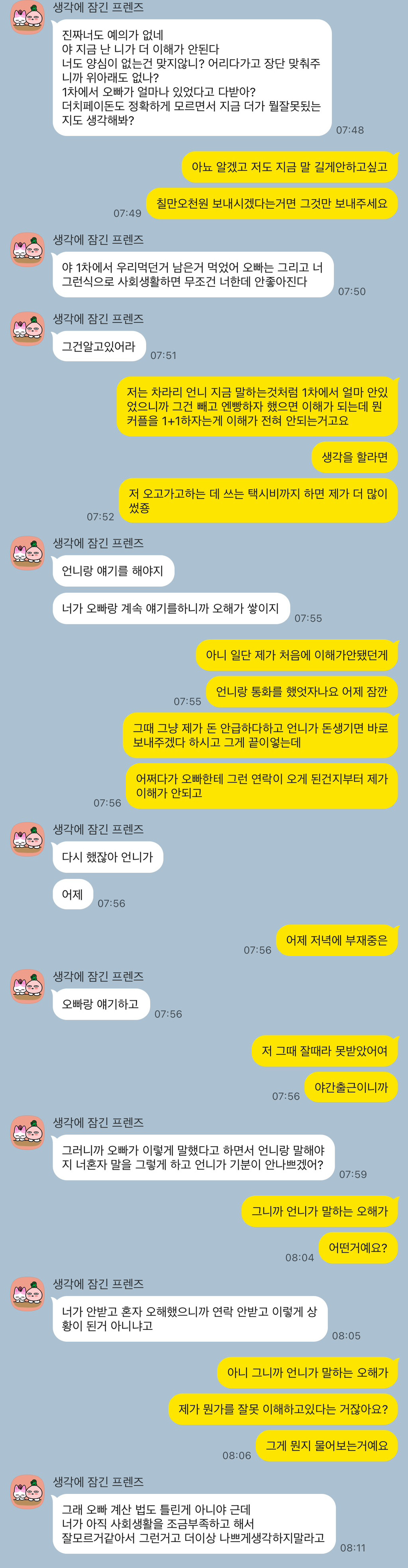당장 보내줄 돈도 없는데 사람은 왜 만나고 술은 왜 먹음 한심하다 -