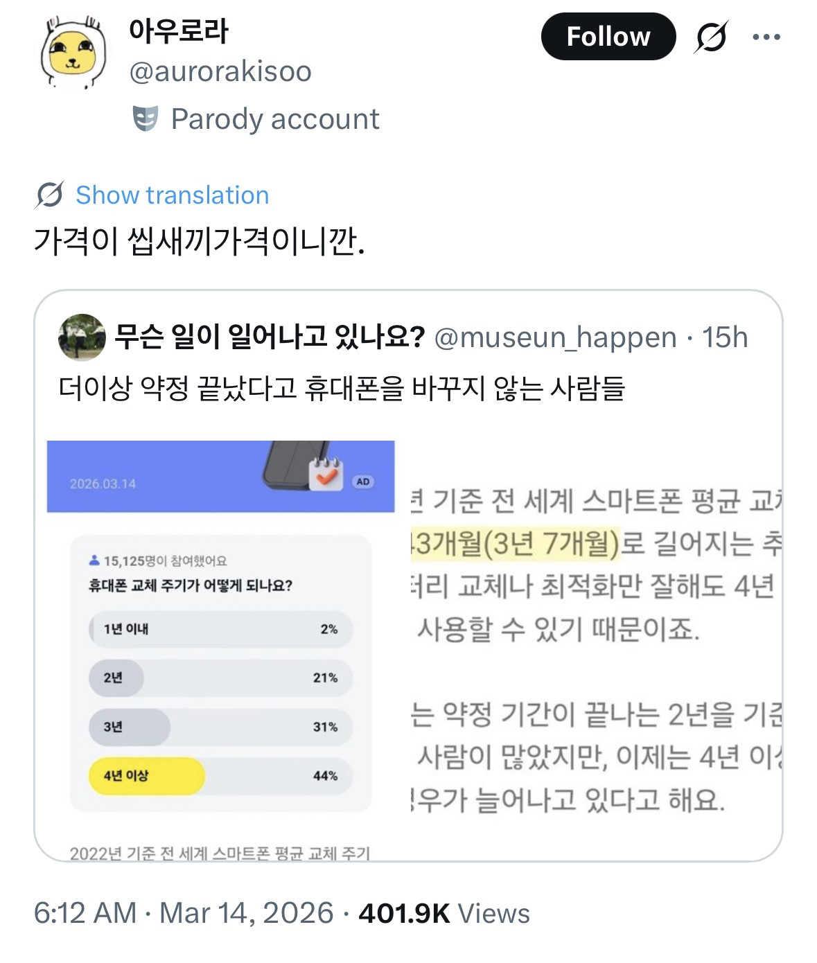 작성자일본은언제가라앉냐 작성시간 26.03.16 16프로맥스 샀는데 가격 거의 이백만원이라 나는 이거 십년 쓸생각으로 샀어 진짜로