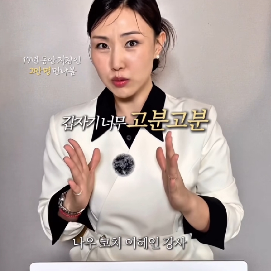 [흥미돋]팀원이 갑자기 너무 협조적이 되면 의심해야함 작성자(본인 닉네임.|작성시간26.03.15|조회수69,806 목록 댓글 38 글자크기 작게가 글자크기 크게가 출처: 여성시대 (본인 닉네임.갑자기 너무 협조적이고 갈등이 없어지고다 맞춰줌이 방식으로 하는 게 낫지않을까요?이런거 없어짐시키는대로 다 함갑작스럽게 뭐가 바껴도다 알겠다고함문서로 모든걸 정리하기 시작함퇴사의 징조어차피 말해봐야 내 입만 아프다그냥 아~네~네네~아~예~^^ 다음검색 현재 게시글 추가 기능 열기 북마크 공유하기 신고 센터로 신고 댓글 댓글 38 댓글쓰기 답글쓰기 댓글 리스트 작성자이토록평범한미래 | 작성시간 26.03.16 나도 연헙 망하고 네네 하다가 퇴사함ㅋㅋㅋ 왜 내가 입아프게 말해야하는지 모르겠더라 작성자로또딩첨로또제발요 | 작성시간 26.03.16 나잔아...그러를그러세요 작성자삼성정품 | 작성시간 26.03.16 ㅁㅈ 공감 작성자고봉민 | 작성시간 26.03.16 ㄹㅇ 저러게돼.,,, 작성자푸우우르른 | 작성시간 26.03.20 이거 헤어지기전 커플하고 똑같네 댓글 전체보기