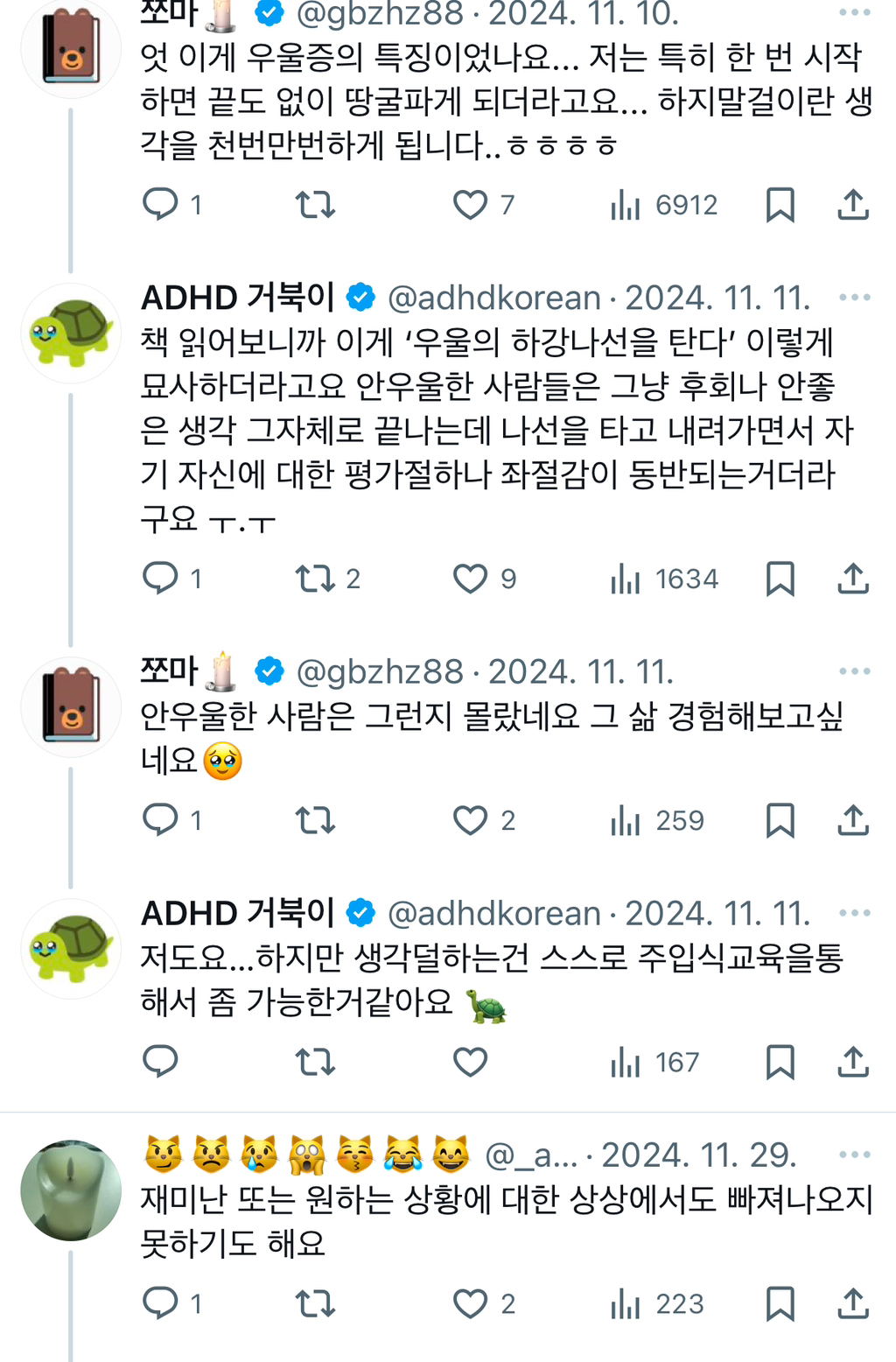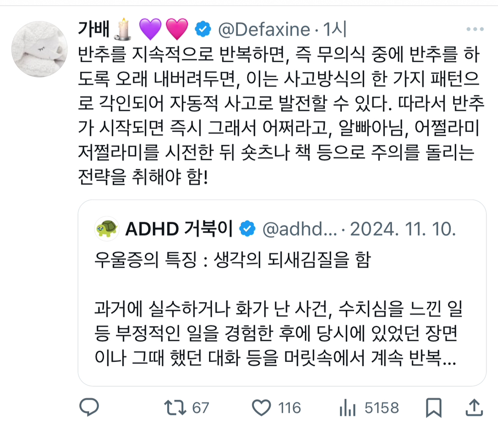 작성자동동취 작성시간 26.03.16 헐..이게 우울증 증상이었다니 충격이다 난 다 그런줄 알았는데