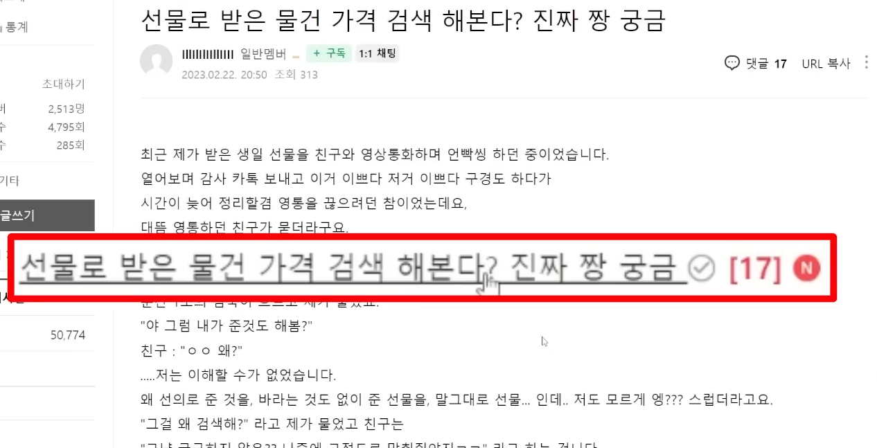 저는 뭘 검색하냐고 물었고 친구는 자기가 받은 선물의 가격을 다 검색해 본다고 합디다.