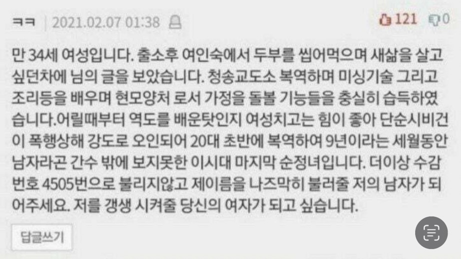 [배꼽의행방]설날 때 저희 집에 오실 30대 여성분을 찾습니다 작성자느개비롯데리아에서계엄모의함|작성시간26.03.15|조회수24,961 목록 댓글 36 글자크기 작게가 글자크기 크게가 출처: 여성시대 (느개비롯데리아에서계엄모의함)아까 쩌리하다 밑에거 보고 원본 글 궁금하다고 한 여시 있어서 올려봄 문제시 여자가 그럴수도 있지 다음검색 현재 게시글 추가 기능 열기 북마크 공유하기 신고 센터로 신고 댓글 댓글 36 댓글쓰기 답글쓰기 댓글 리스트 작성자깐따삐아 | 작성시간 26.03.16 글빨 미쳤다고 ㅋㅋㅋㅋㅋㅋㅋㅋㅋㅋㅋ 작성자검은발살쾡이 | 작성시간 26.03.16 명필이다 작성자GEGURI | 작성시간 26.03.16 ㅋㅋㅋㅋㅋㅋㅋㅋㅋㅋㅋㅋㅋㅋㅋㅋㅋㅋㅋㅋㅋㅋㅋㅋㅋㅋㅋㅋㅋㅋㅋㅋ아 개웃겨 작성자빨리버섯 | 작성시간 26.03.16 만 34세 너무 어리신데ㅠㅠ 45세 만나기엔 앞길이 너무 창창해요 작성자알빠임?! | 작성시간 26.03.18 진짜 재능은 타고나는거야.. 댓글 전체보기