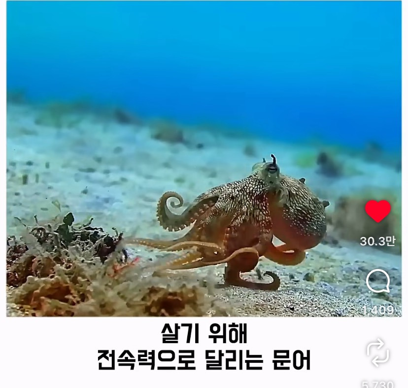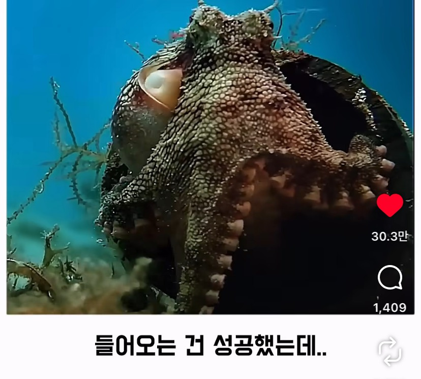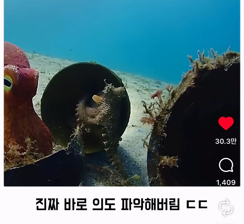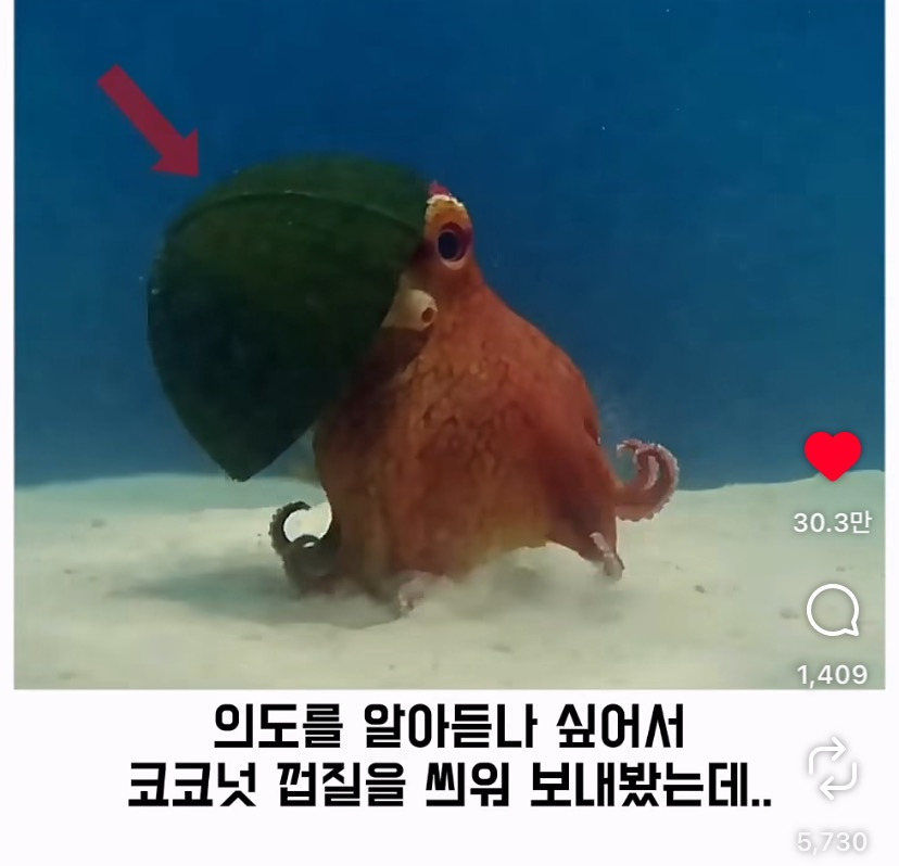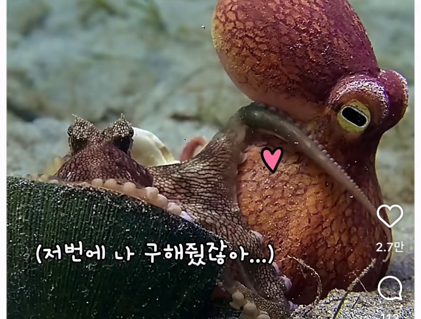 작성자응아니얌 작성시간 26.03.28 문어가 인류 다음으로 젤 똑똑하대. 원숭이인줄 알았는데 아니라네. 문어가 출산 후엔 다 죽어서 자기가 배운 걸 전승을 못해서 그렇지 하게 되면 엄청나게 똑똑한 생물일거라는데