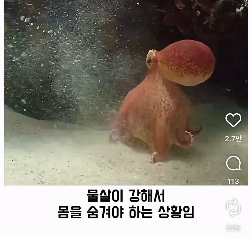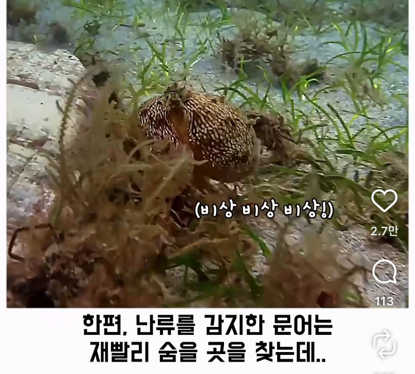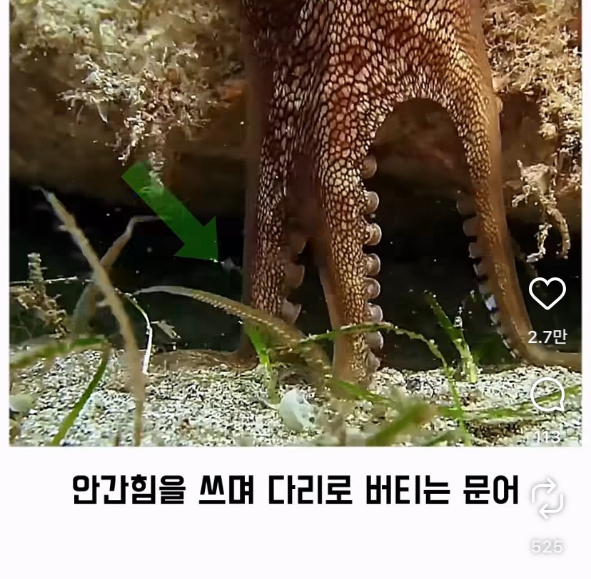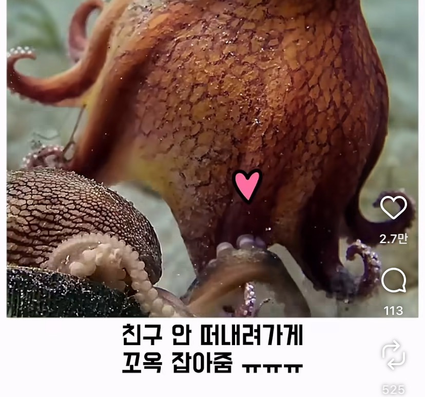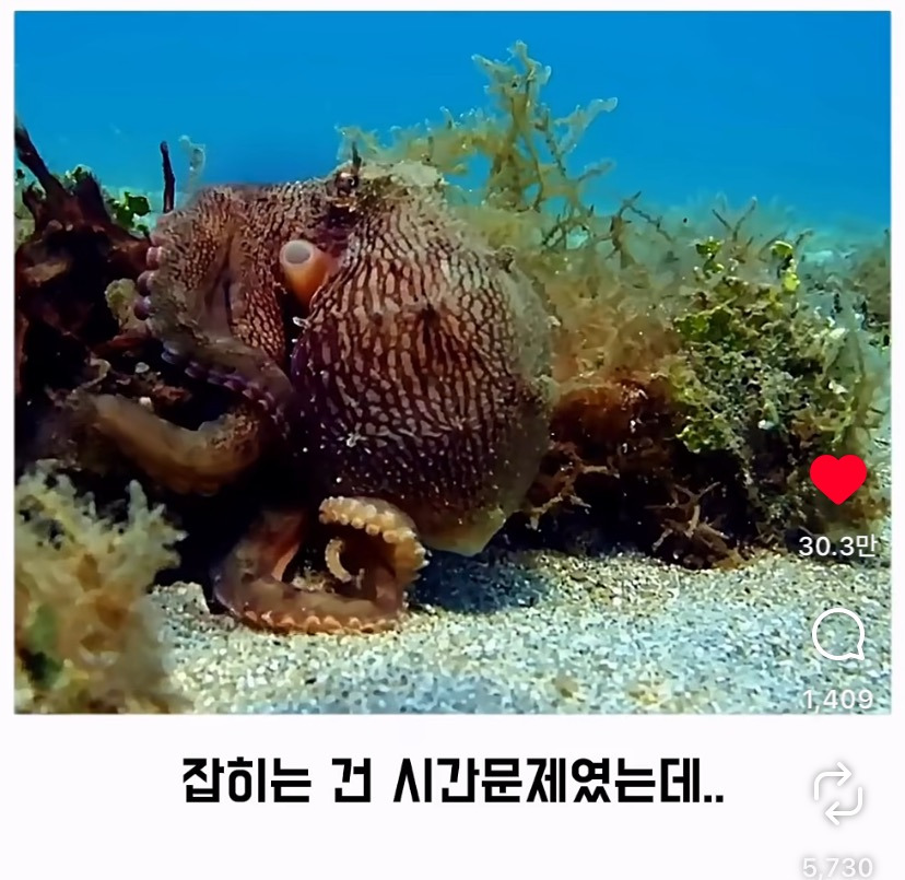 작성자응아니얌 작성시간 26.03.28 문어가 인류 다음으로 젤 똑똑하대. 원숭이인줄 알았는데 아니라네. 문어가 출산 후엔 다 죽어서 자기가 배운 걸 전승을 못해서 그렇지 하게 되면 엄청나게 똑똑한 생물일거라는데