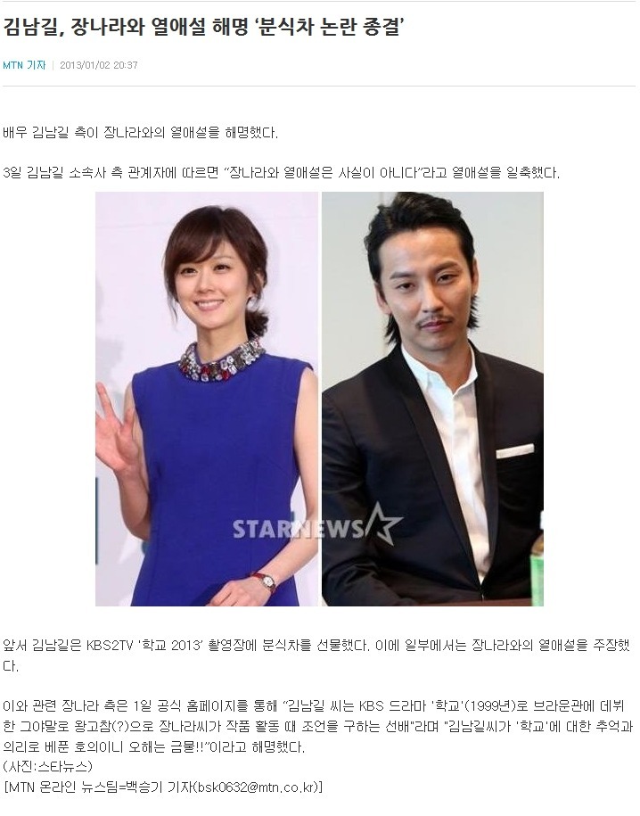 최다니엘의 소속사 AT엔터테인먼트의 한 관계자는 2일 오후 OSEN에 “김남길 씨가 어제(1일) 최다니엘 씨와 장나라 씨를 위해 촬영장에 분식차를 선물했다”면서 “우리쪽 매니저가 잠시 자리를 비운 사이에 김남길 씨가 촬영장에 왔다가서 상황을 잘 몰랐다”고 해명했다.