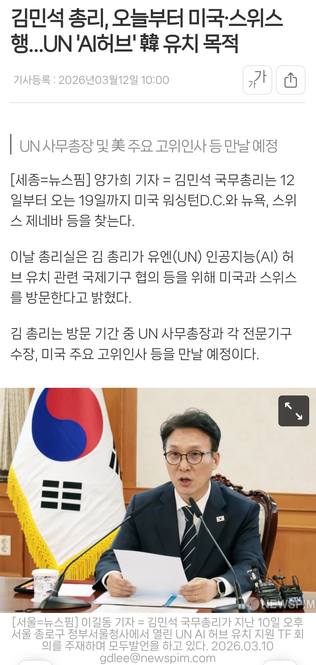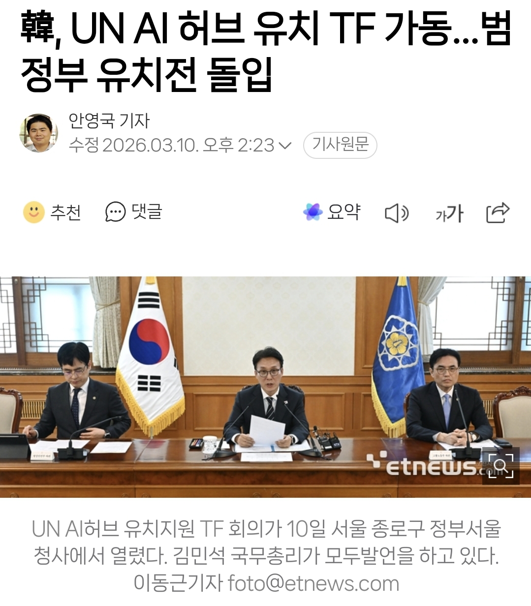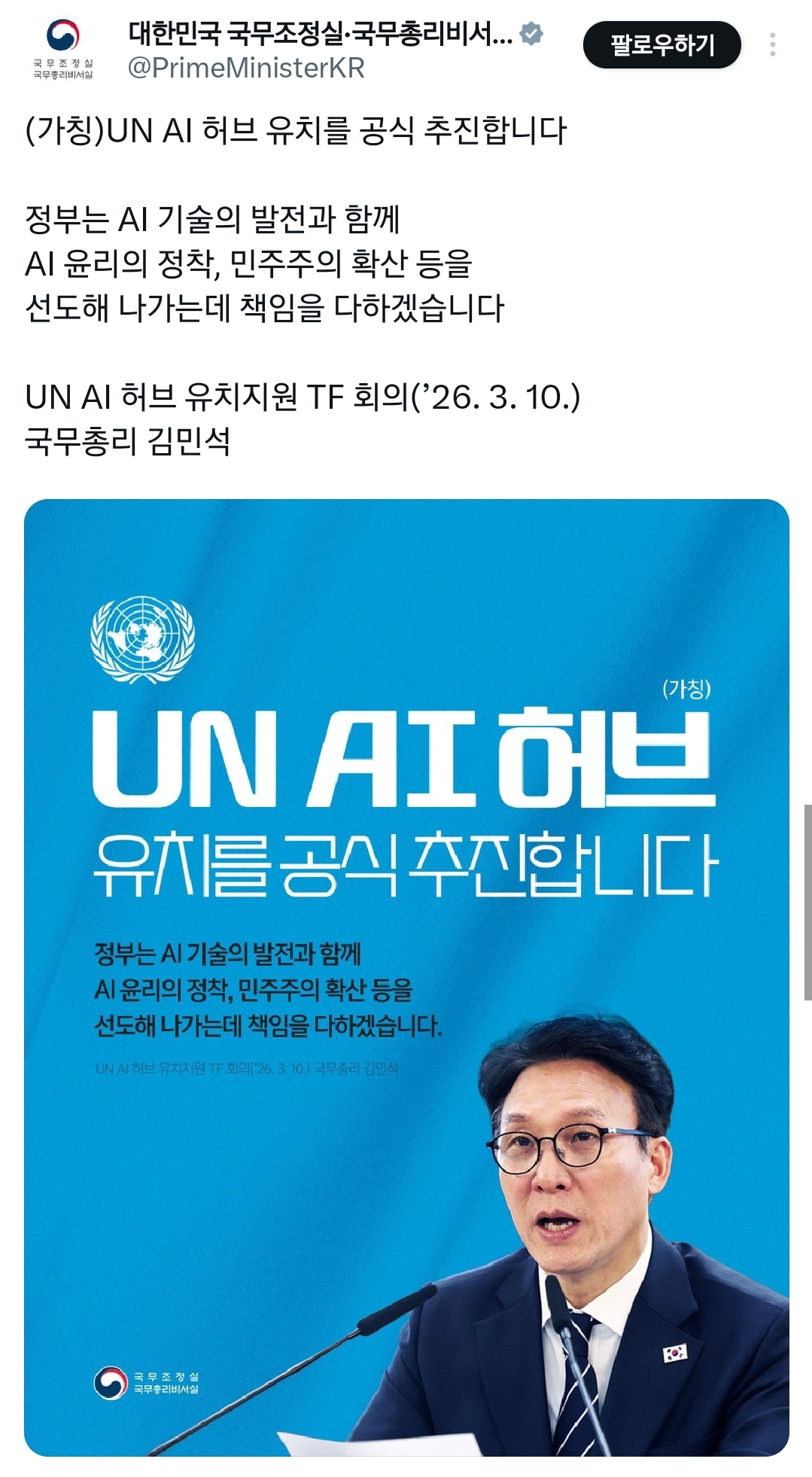 한국에 UN AI 허브를 유치하는 걸 UN에 역으로 제안한다고 함