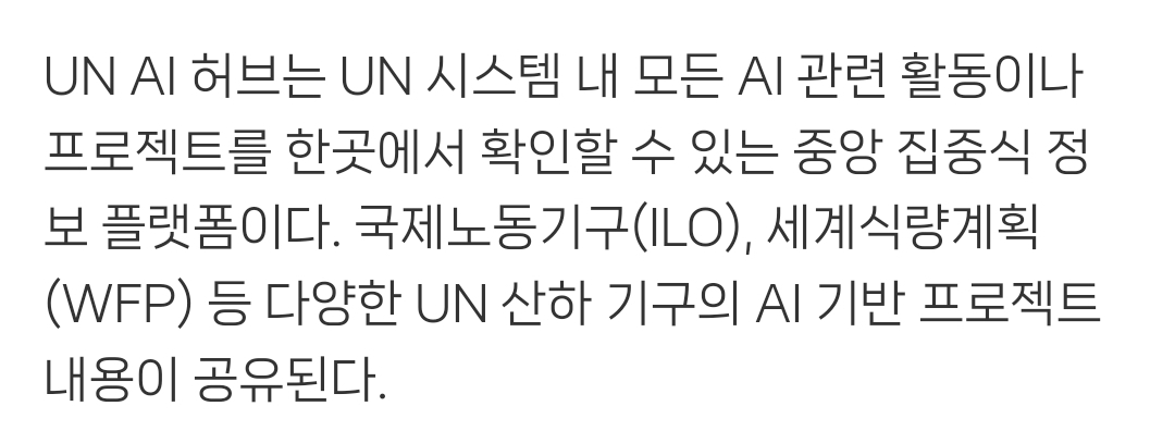 지금 UN 산하 기구들에 흩어져있는 AI 관련 정보들과 기능을