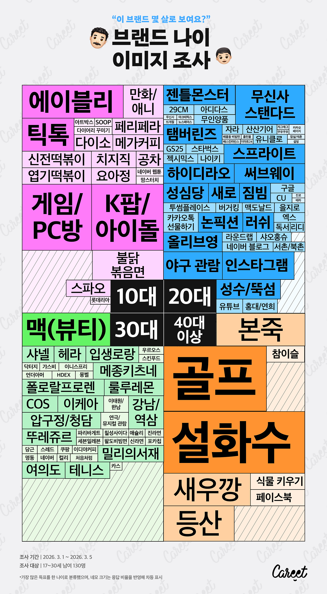 Z세대 소비자 130명에게 푸드, 음료·디저트, 뷰티, 패션·소품, 디지털 서비스, 서울 핫플레이스, 취미·취향 등