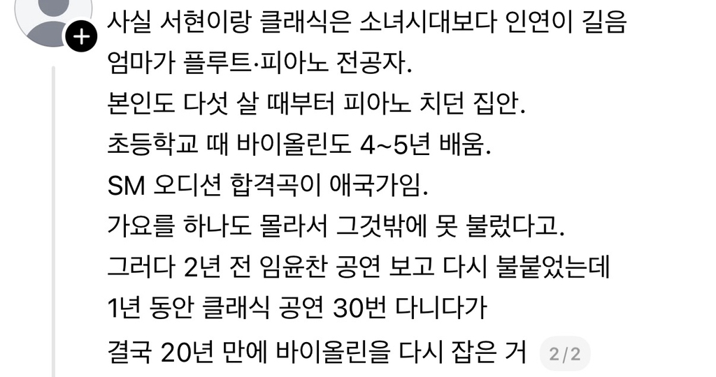 아니 ㅅㅂ 욕하는 것도 어이없네. 서현을 통해 클래식이 대중들한테 좀 더 친숙햐지면 좋은거 아님? 뭔 특혜 -