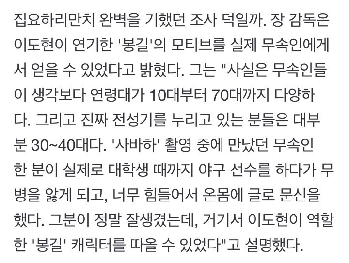 [스크랩] [흥미돋]실존인물 모티브라는 <파묘> 이도현 캐릭터 작성자춘구마|작성시간26.03.18|조회수16,864 목록 댓글 29 글자크기 작게가 글자크기 크게가 출처 : https://theqoo.net/square/3116853612 다음검색 스크랩 원문 : *여성시대* 차분한 20대들의 알흠다운 공간 현재 게시글 추가 기능 열기 북마크 공유하기 신고 센터로 신고 댓글 댓글 29 댓글쓰기 답글쓰기 댓글 리스트 작성자푸른 연인 | 작성시간 26.03.18 캐디 쥑이더라 작성자장혁 | 작성시간 26.03.18 장발에 전신 문신 캐릭터성미쳤음 작성자콬훗ㅁ헝 | 작성시간 26.03.18 맛도리 작성자목련이 | 작성시간 26.03.18 스타일링 ㅈㄴ 신의한수 작성자볼파이톤 | 작성시간 26.03.18 캐릭터가 매력있음 근데 화림이 옆에 있어야 그 매력이 보임ㅋㅋㅋㅋㅋㅋ화림이가 태양이라 그 빛을 받아 빛나는 달같은 느낌 댓글 전체보기