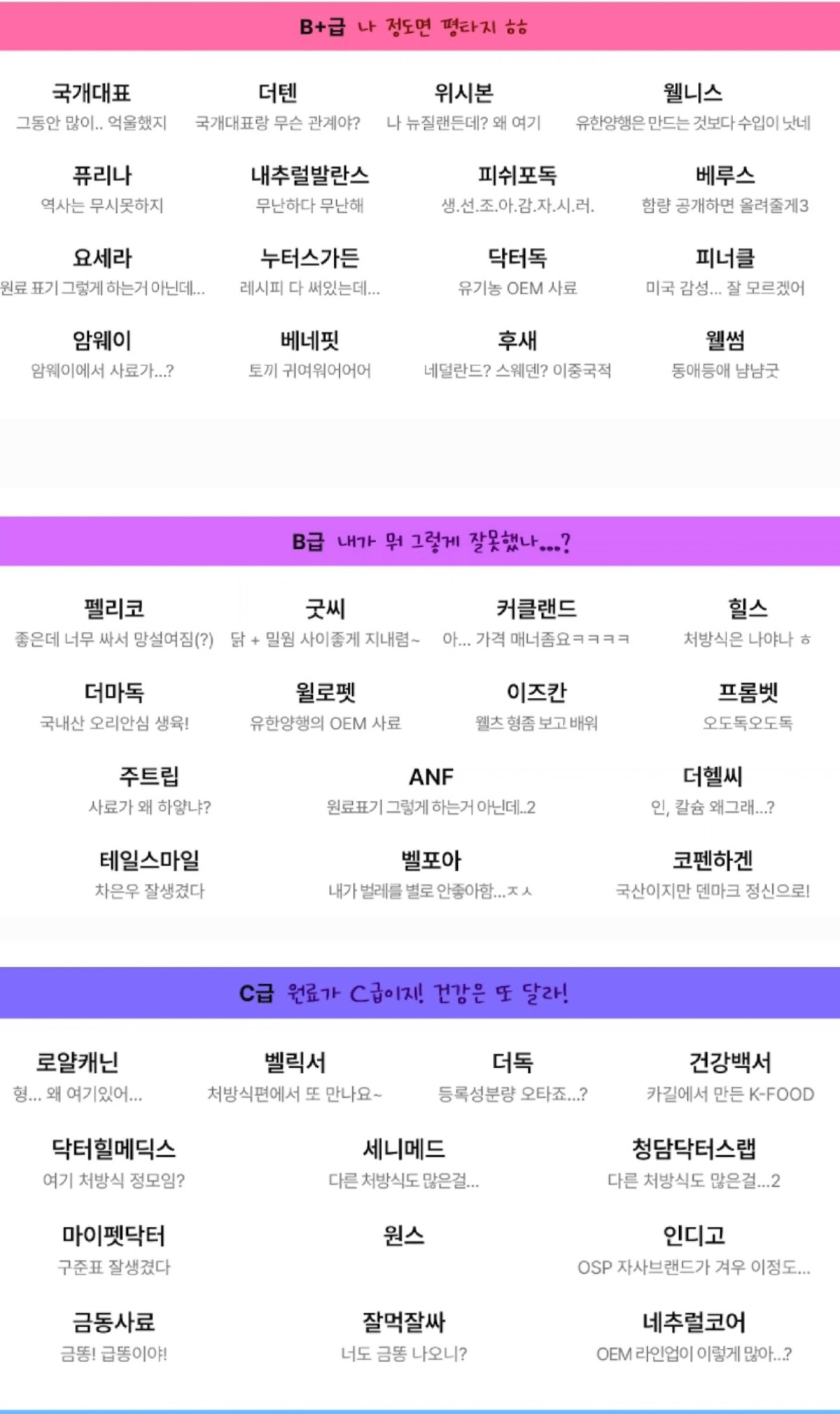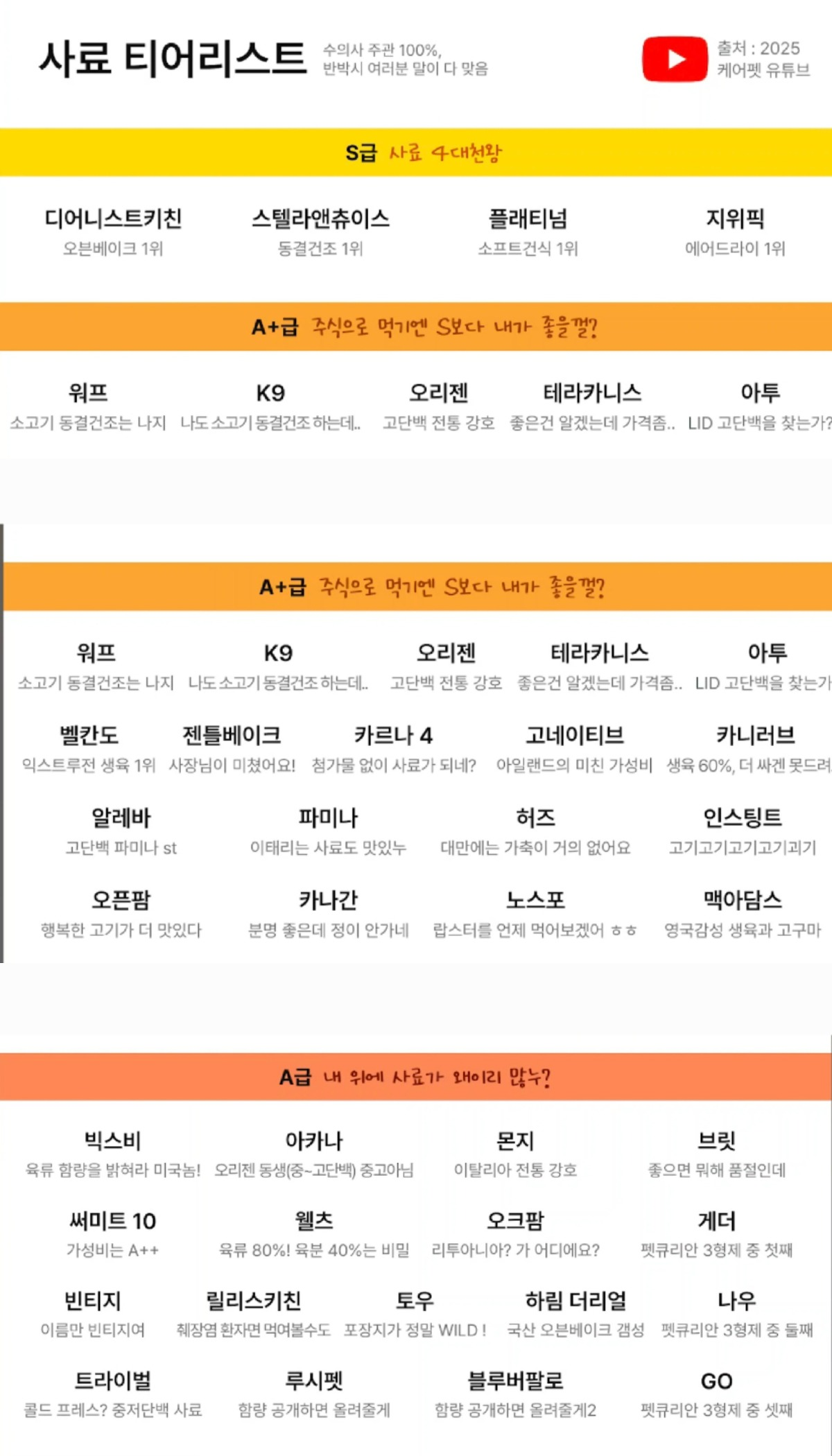사료 티어리스트를 한번 만들어보았습니다.