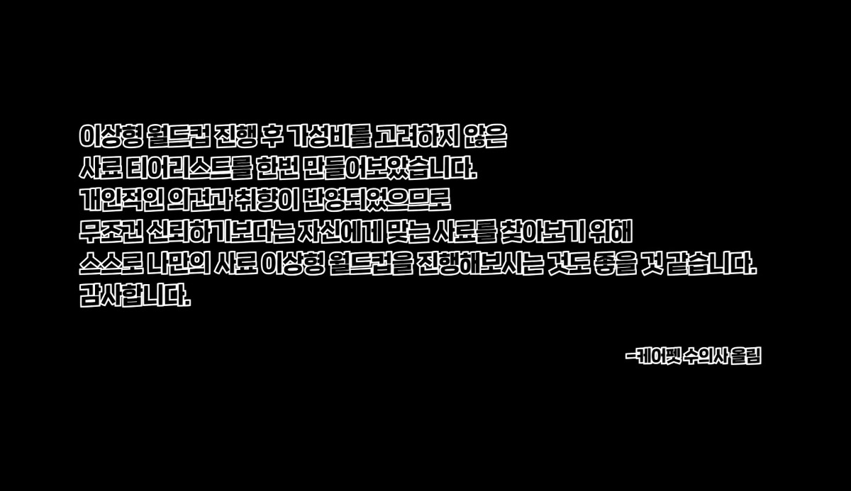 이상형 월드컵 진행 후 가성비를 고려하지 않은