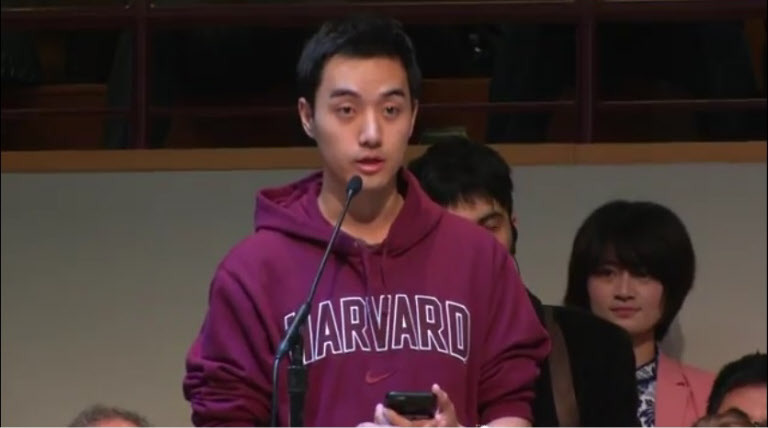 아베 면전에서 위안부 돌직구 질문 던진 하버드 한인 학생