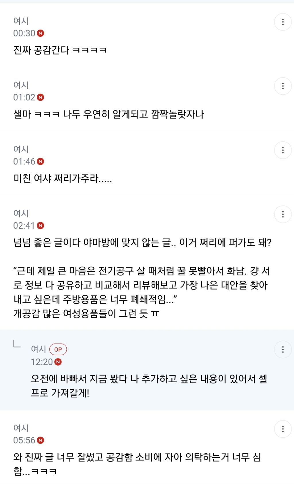 내가 궁극적으로 바라는 건 여자들이 감성에 돈 쓰지 말고 합리적 여성 소비 공동체를 이루는거야. 그래서 스텐냄비 5시간 찾아보는 대신 간단한 검색으로 원하는 조건의 냄비를 살 수 있는거야. 샐마 구매자들을 바보 취급하는건 거기에 방해가 될 거 같아. 수치심을 줄수록 그들만의 커뮤니티에서 자기들끼리 얘기하게 되니까.