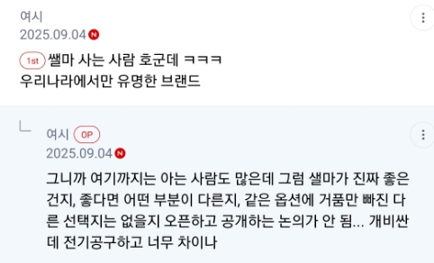 샀는데 글케 좋은지 모르겠단 사람한테는 구구절절 뚱댓으로 샐마를 옹호하고,