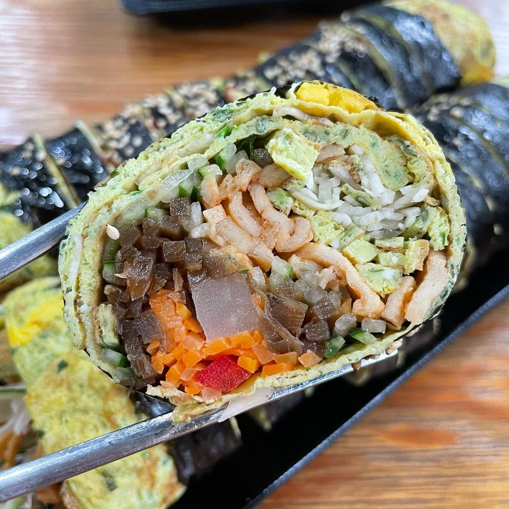 대전 둔산동의 숨은 김밥 맛집이다. '묵은지참치김밥'과 '다이어트김밥'이 유명하며, 큼직한 크기에 얇게 깔린 밥과 푸짐한 속 재료가 특징이다. 포장만 가능하고 주문량이 많아 보통 1시간 예약은 필수다.