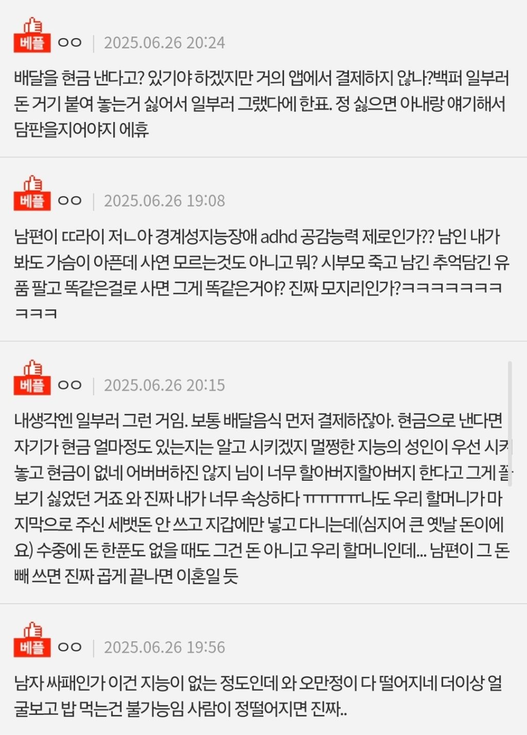 그 돈이 나한테 중요한 의미인거 알면서 배달이 오는거면 미리 지갑을 준비해놓고 있어야지 아니면 어플에서 미리 결제를 했어야지
