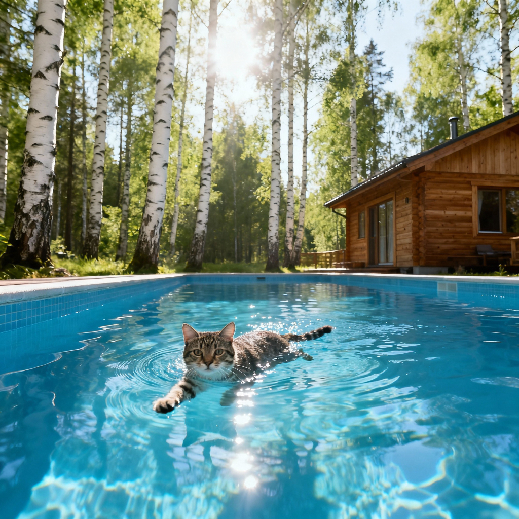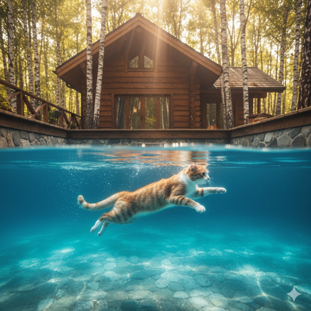 수영장 물속을 헤엄치고 있는 고양이 이미지를 생성해줘
