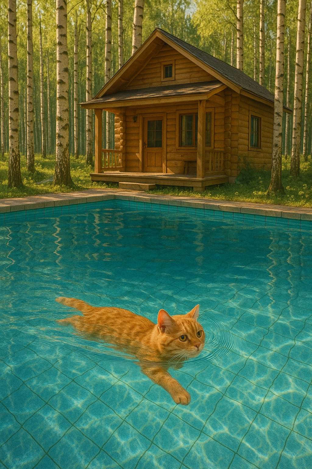 수영장은 자작나무 숲 한 가운데의 한적한 목재 별장에 딸려있었으면 해
