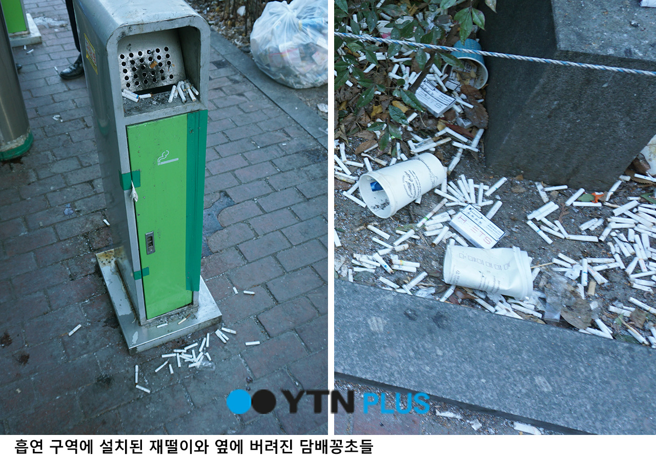 심지어 재떨이가 설치된 곳인데도 그 안에 안 버림