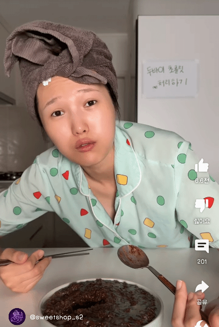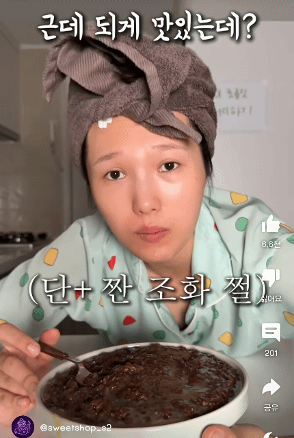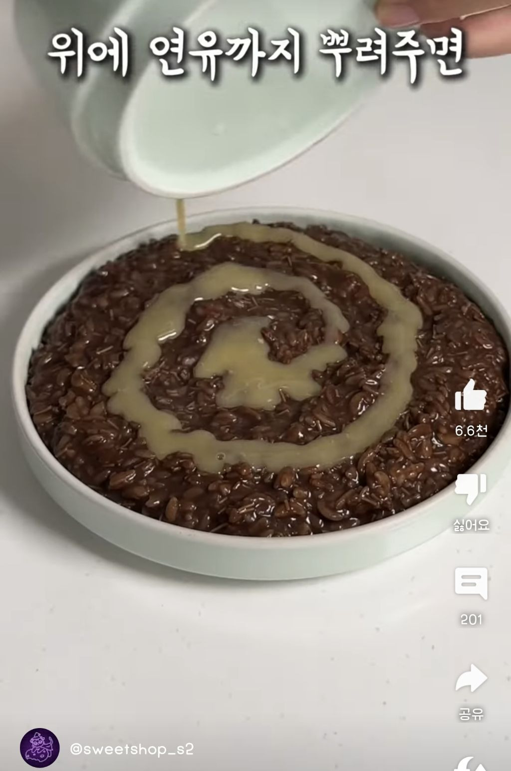 완성본!!! 두바이초콜릿에 연유까지... 뭔가 팥죽같기도 하궁...