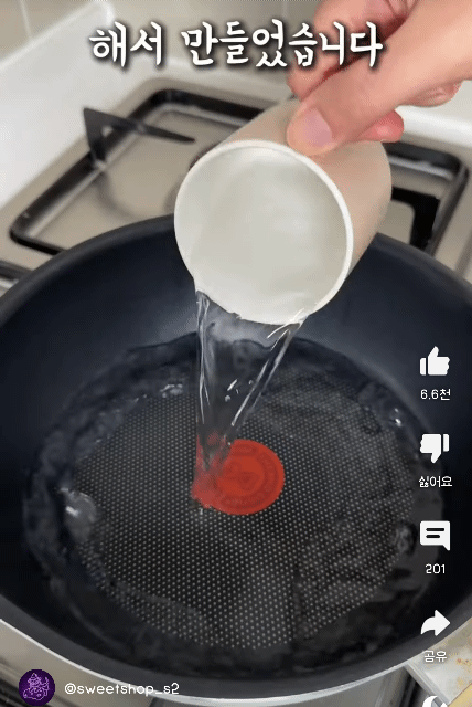 두바이초콜릿 짬처이를 위해 두바이초콜릿으로 죽 만드는 중