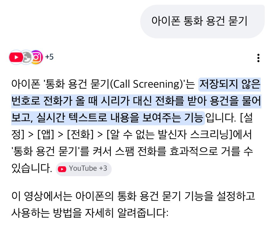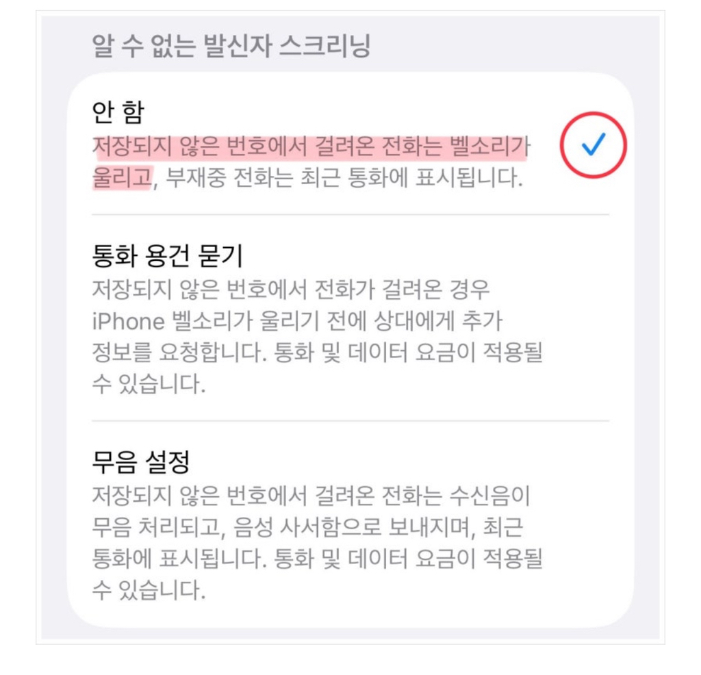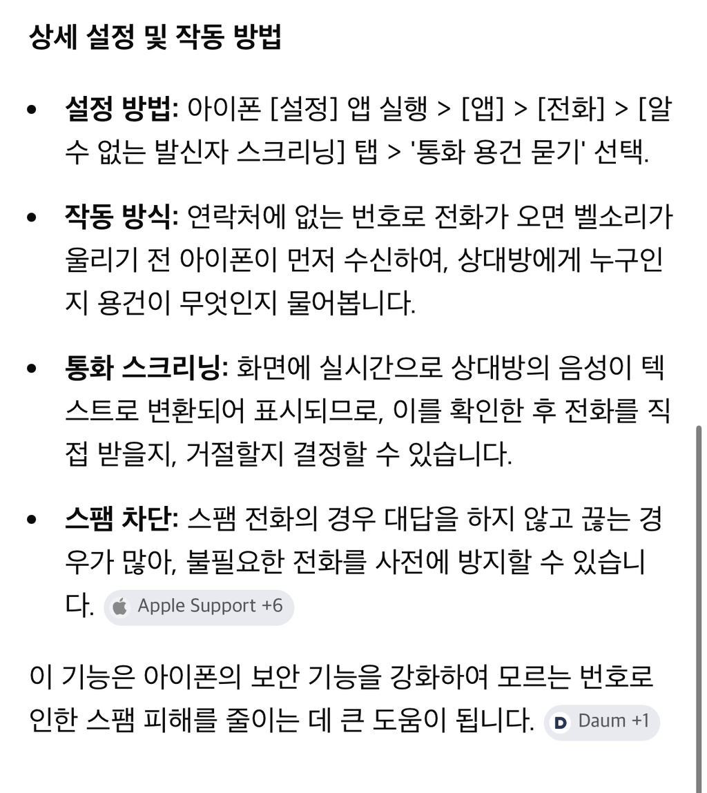 알 수 없는 발신자 스크리닝-통화 용건 묻기