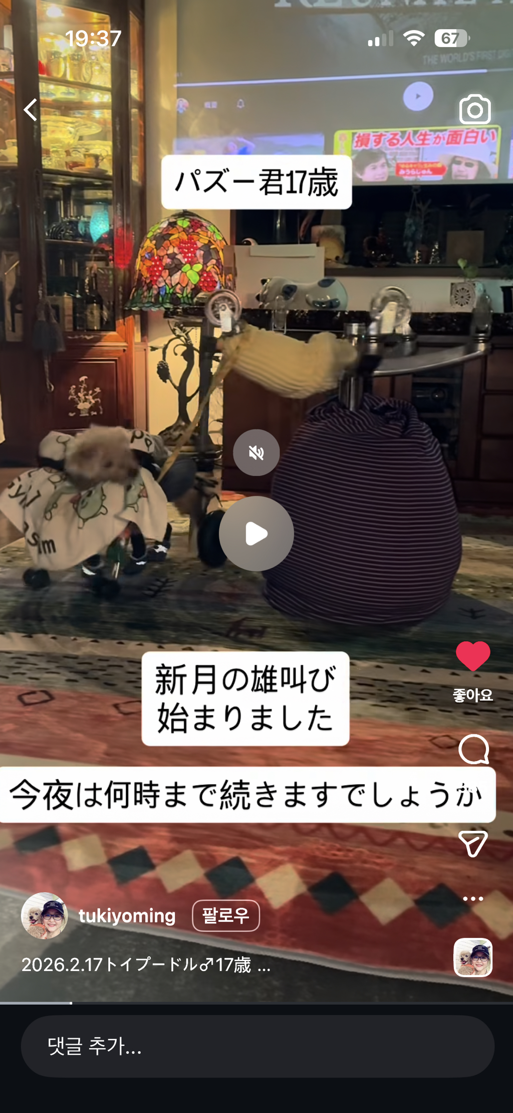 [눈물한방울]치매증상으로 써클링하는 17살 강쥐를 위해 주인이 만들어준 것 작성자말티쬬|작성시간26.03.22|조회수23,754 목록 댓글 21 글자크기 작게가 글자크기 크게가 출처: https://www.instagram.com/reel/DU3FJ3AD6I5Instagram의 Laputa scita님 : "2026.2.17トイプードル♂17歳#介護犬 #グル活犬 #親バカ溺愛犬 #老犬介護 #12K likes, 385 comments - tukiyoming - February 17, 2026: "2026.2.17トイプードル♂17歳 #介護犬 #グル活犬 #親バカ溺愛犬 #老犬介護 #癲癇犬".www.instagram.com출처로 가면 영상 있어요 🥲 다음검색 현재 게시글 추가 기능 열기 북마크 공유하기 신고 센터로 신고 댓글 댓글 21 댓글쓰기 답글쓰기 댓글 리스트 작성자수웆이 | 작성시간 26.03.22 ㅠㅠ 작성자초코초코촠 | 작성시간 26.03.22 ..ㅜㅠㅠㅜ 작성자코차슈 | 작성시간 26.03.22 15살 끝무렵쯤부터 하다가 이번에 17살 됐는데 무지개건넜어 작성자비버버버버버 | 작성시간 26.03.22 ㅜㅠ사랑이다 정말 작성자옭옭왈왈 | 작성시간 26.03.23 슬프다 댓글 전체보기