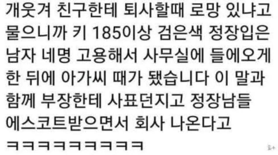 작성자효효효횽 작성시간 26.03.22 저 정도는 아니고 걍 한명만 회사 올라와서 가시죠 하고 한시간 대여한 리무진 타고 가고싶어