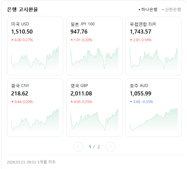 [흥미돋]3/23 오전 9시 53분 기준 환율 작성자바나나스플릿구슬|작성시간26.03.23|조회수9,124 목록 댓글 62 글자크기 작게가 글자크기 크게가 출처: 여성시대 바나나스플릿구슬 다음검색 현재 게시글 추가 기능 열기 북마크 공유하기 신고 센터로 신고 댓글 댓글 62 댓글쓰기 답글쓰기 댓글 리스트 작성자dnwmwoodz | 작성시간 26.03.23 시히히발 당분간 1500 밑으로 안내려오려나 연말에 미국여행가는데 ㅅㅂ 작성자소형준 | 작성시간 26.03.23 씨이이팔 작성자숭퍼내추럴 | 작성시간 26.03.23 아… 작성자사과귤복숭아 | 작성시간 26.03.23 금리 올려… 작성자메론그릭요거트 | 작성시간 26.03.23 이게나라냐 댓글 전체보기