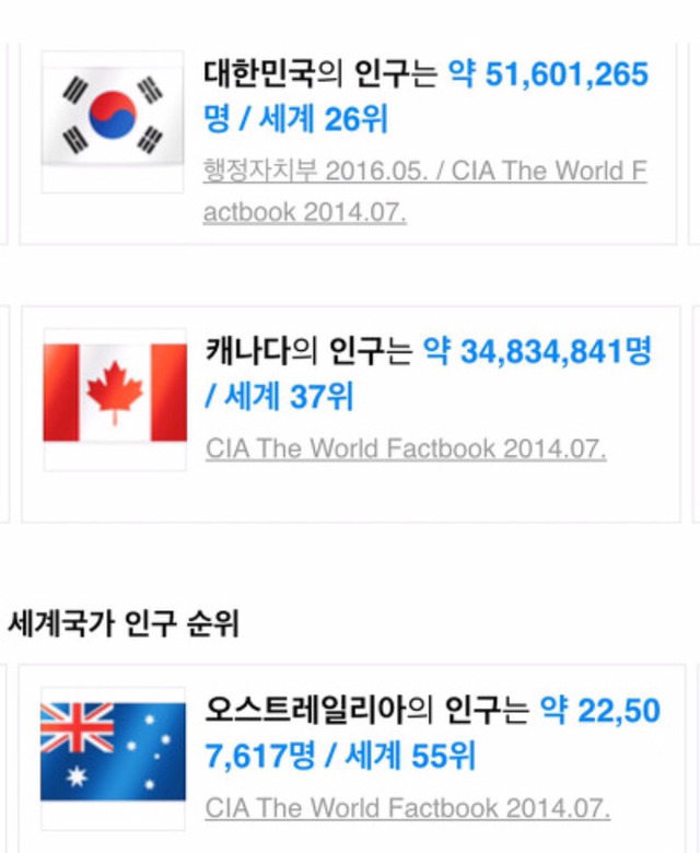 한국의 인구 순위