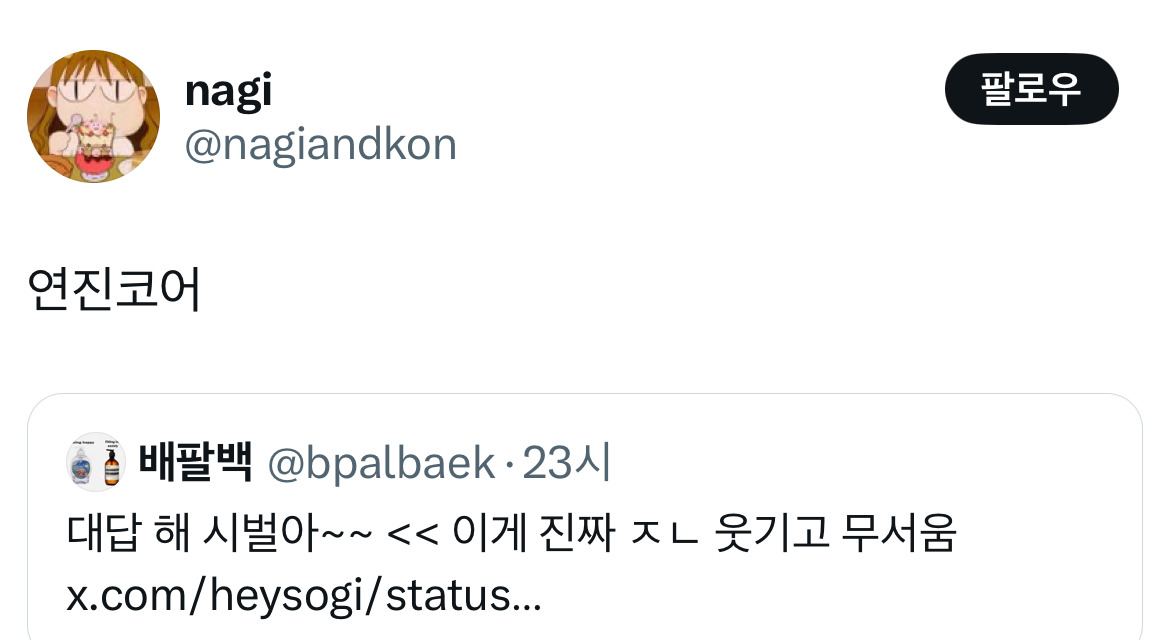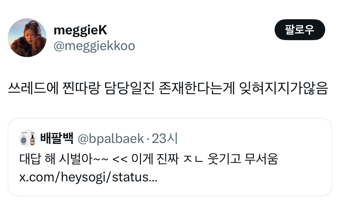작성자쿄냥이 작성시간 26.03.24 대답 해 시벌아~~