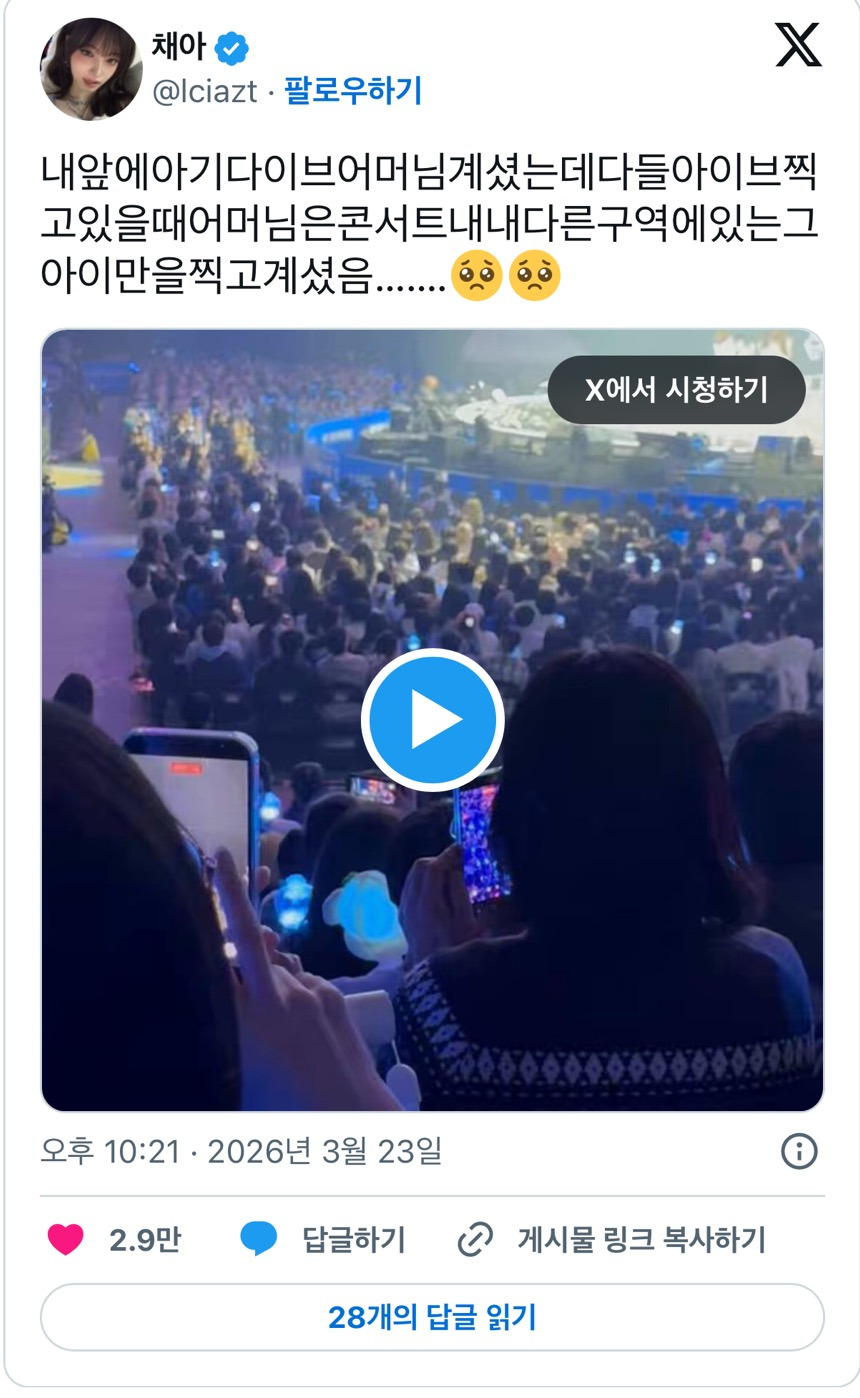 작성자목소리를왜내요 작성시간 26.03.24 나도 임영웅 콘 갔을 때 임영웅 안보고 엄마만 보고 엄마영상 신나게 찍었어.. 너무 좋았어 ㅠㅠ엄마가 좋아하는 모습