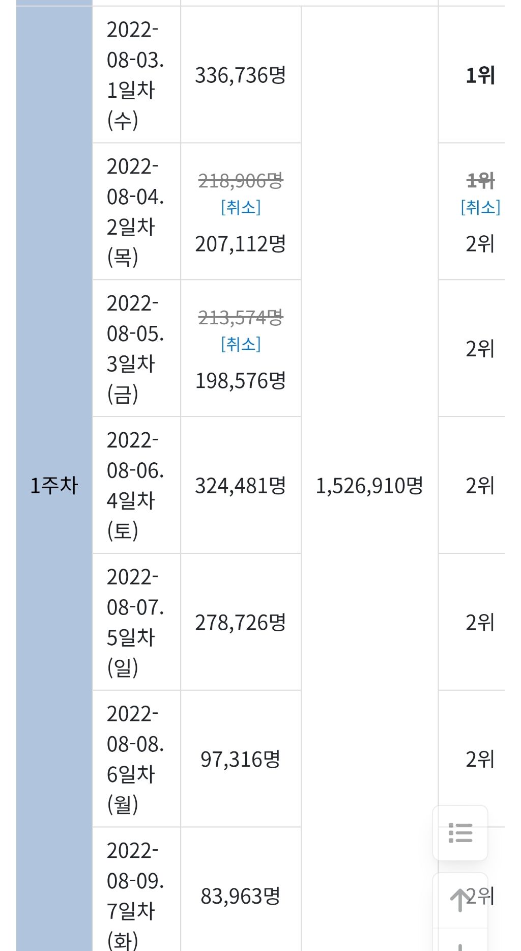 왕사남이 첫주차에 110만 찍은거 비교하면