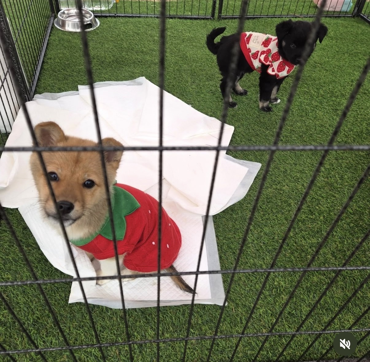 딸기 꼬까옷 입히고 시동물보호소에서 입양 홍보중 !! 만괂부 !!