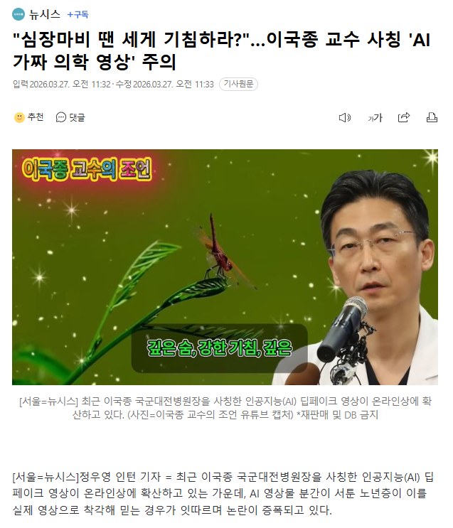 작성자어쩌라구용 작성시간 26.03.27 아니 저런걸 왜 만드는거야.... 그냥 진짜 조회수때문에? 다른것도 아니고 저런 건강정보를 야미로 퍼뜨리냐 ㅈㄴ 악질이다