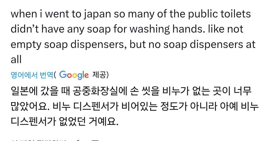 7년 살았는데 비누없는 화장실도 많고