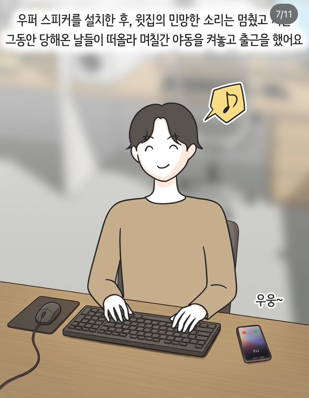 전쟁이 안끝날거같았는데 즈그도 우리집엔 아무소리 안들리는거에 현타 오지게왔는지 할거 다해보고 안되니까 이사가더라 ^^
