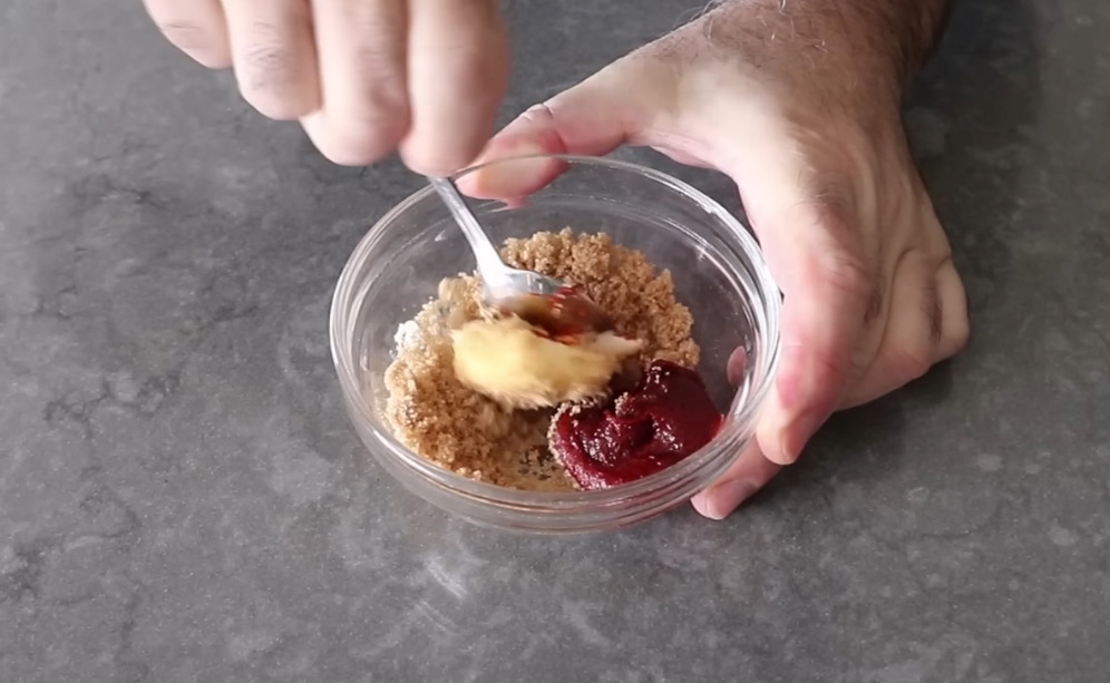 설탕, 고추장, 버터를 섞은 고추장 카라멜 버터 소스를 만들어서
